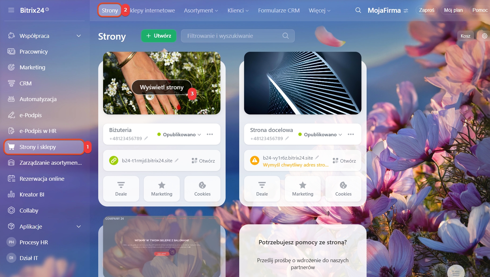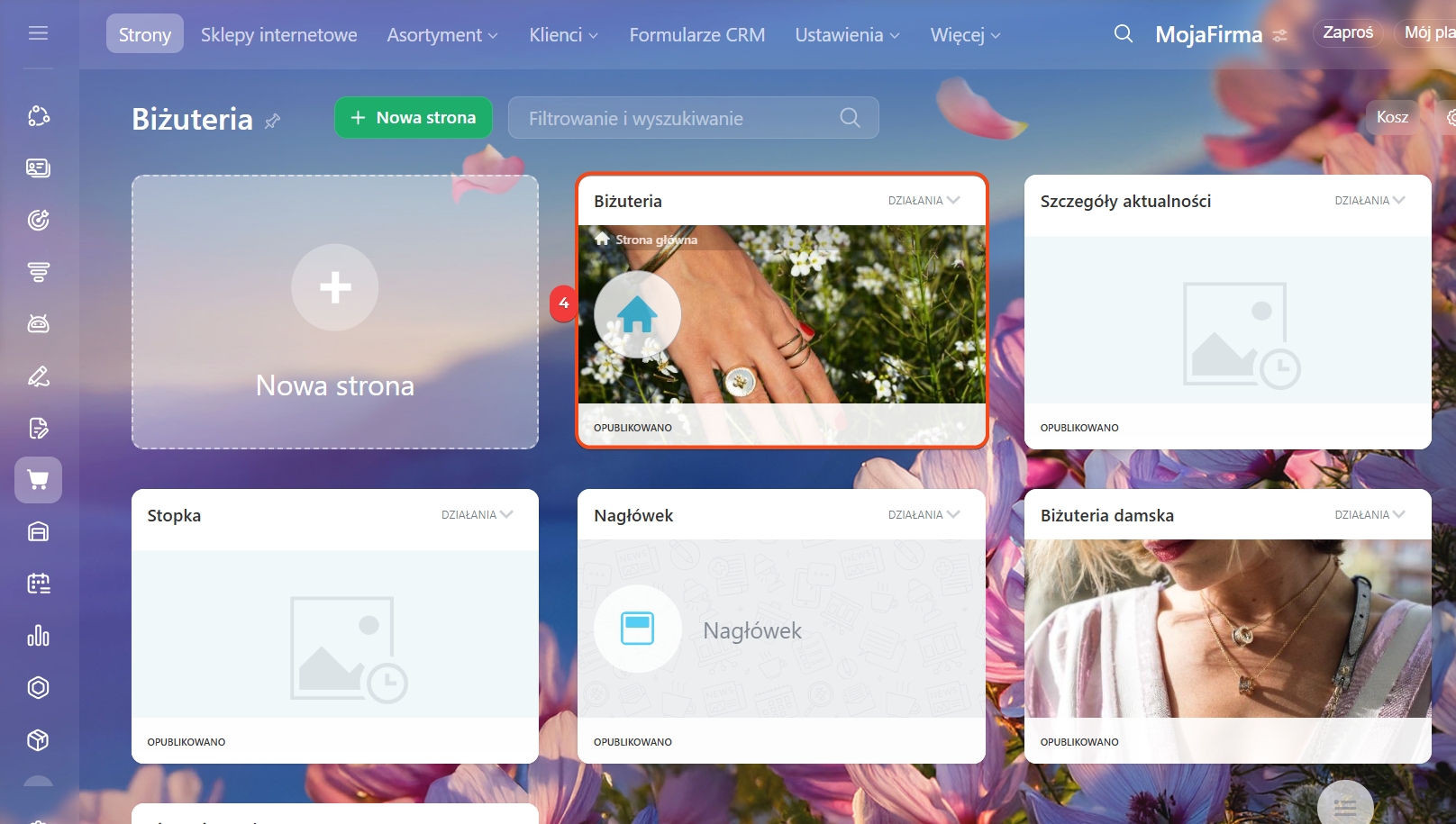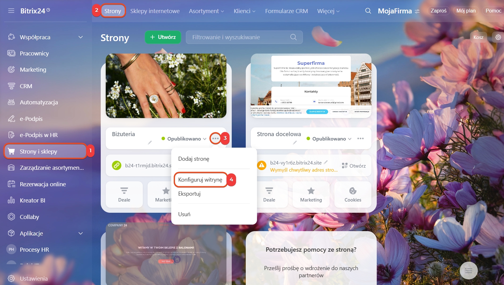 1–2. Przejdź do sekcji Strony i Sklepy > Strony i wybierz odpowiednią stronę.