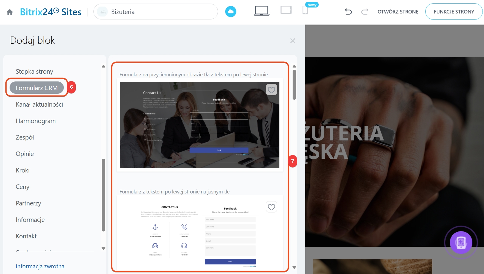 6–7. Przejdź na kartę Formularz CRM i wybierz szablon.