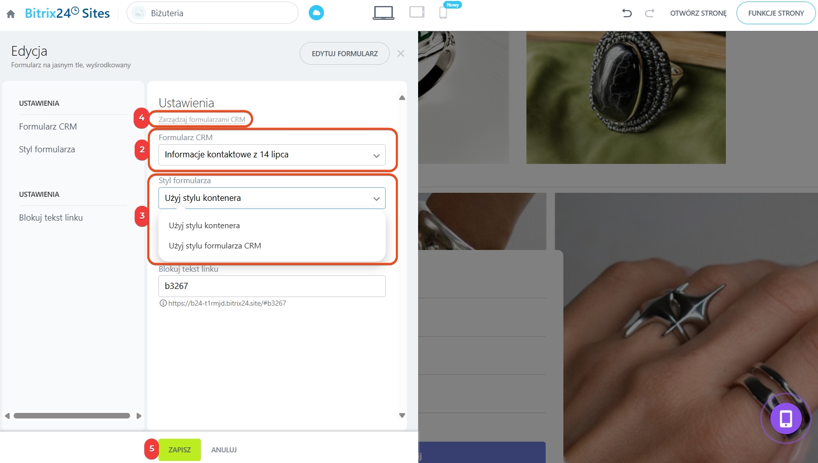 2–3. Wybierz formularz i określ, jaki styl zastosować: bloku lub formularza.