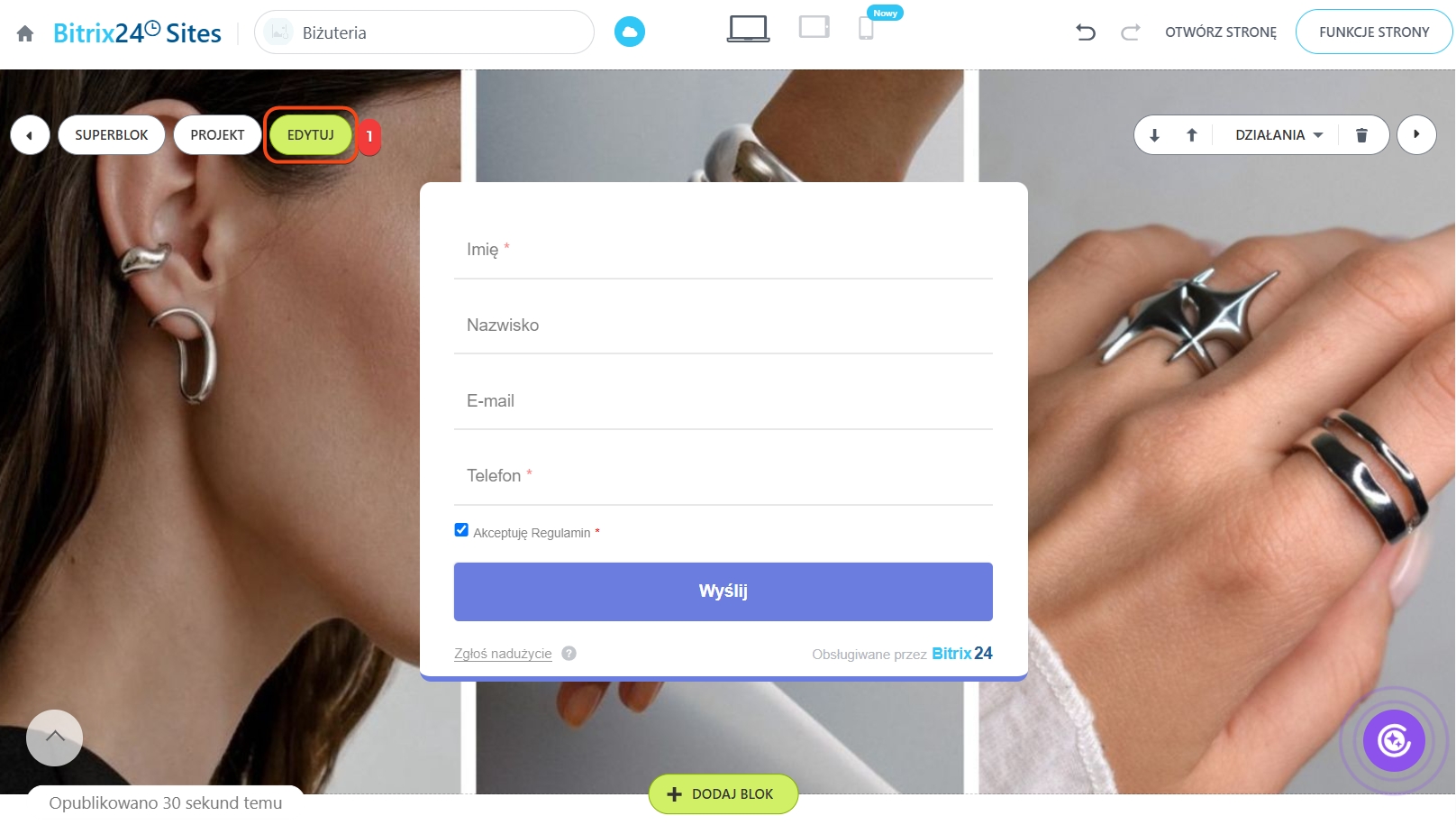 8. Aby edytować formularz i skonfigurować blok, kliknij Edytuj.