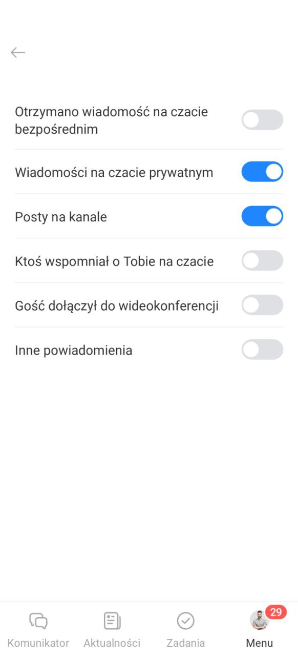 Możesz ustawić powiadomienia dla poszczególnych narzędzi. Na przykład w kalendarzu włącz przypomnienia o wydarzeniach.