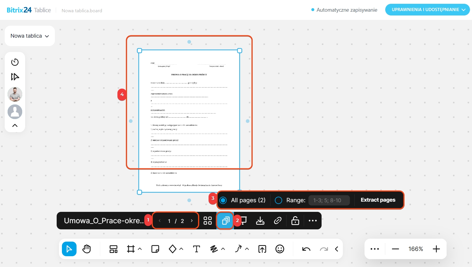 - wyodrębniać wszystkie strony lub wybrane zakresy – wybrane strony zostaną dodane na tablicę jako osobne pliki,