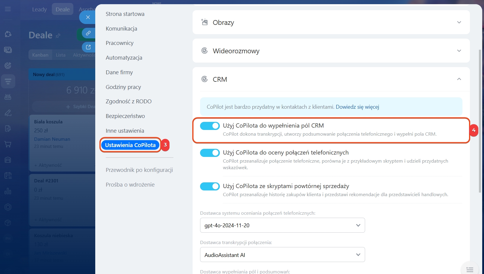 1. Włącz CoPilot w CRM w ustawieniach Bitrix24.