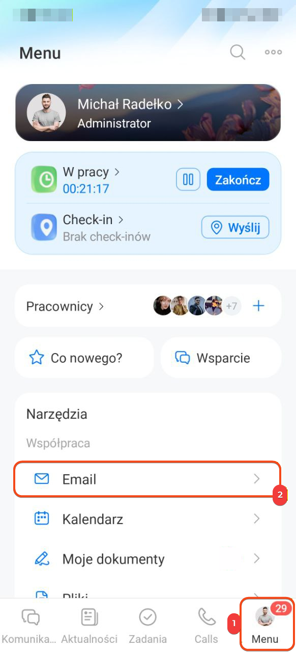 1–2. Przejdź do Menu > Poczta.
