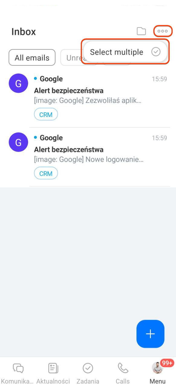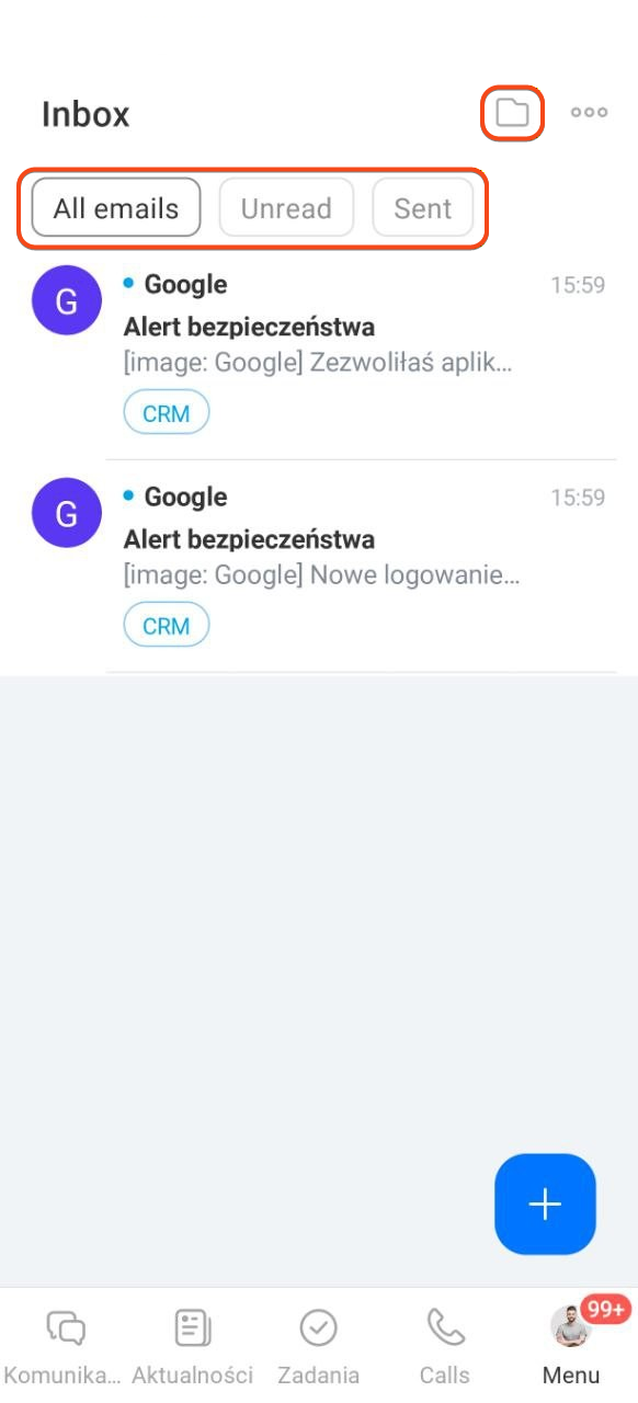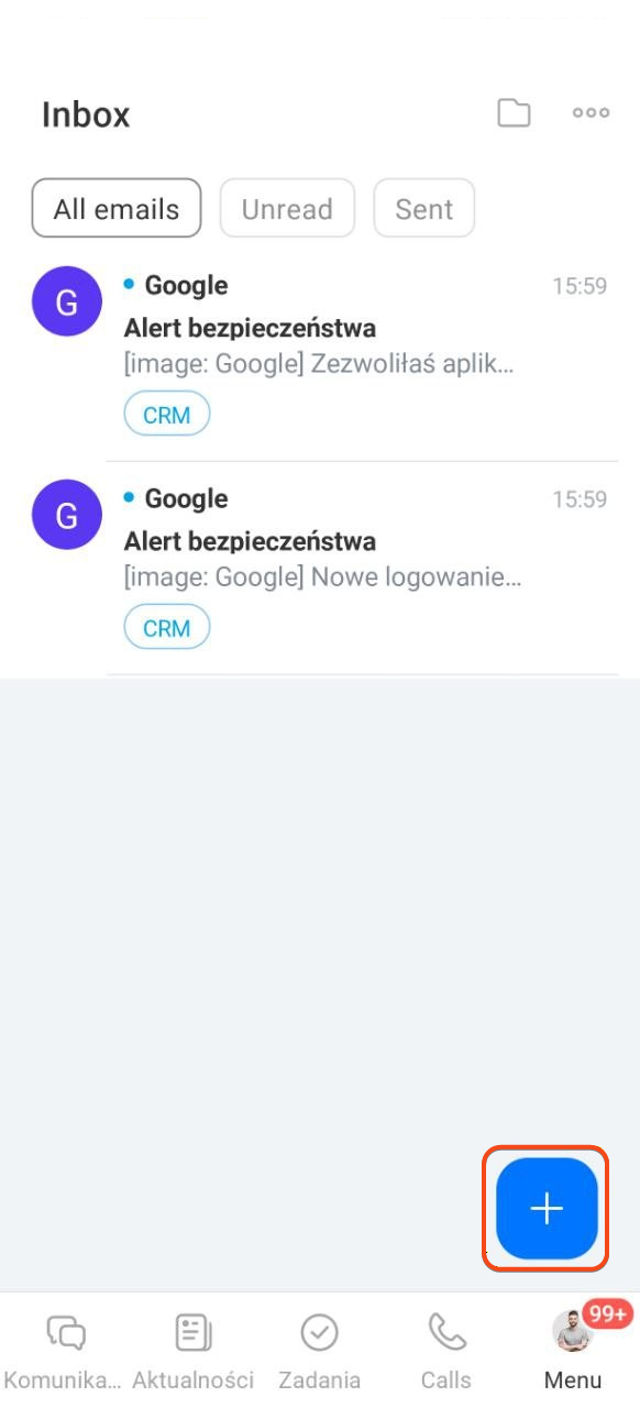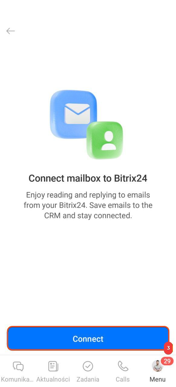 - W aplikacji mobilnej Bitrix24 możesz podłączyć pocztę i pracować z e-mailami tak samo, jak na komputerze.