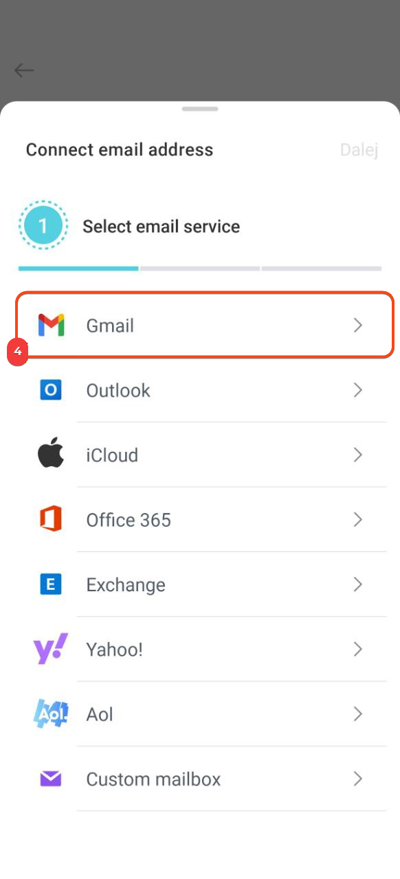4. Wybierz usługę pocztową, którą chcesz podłączyć.