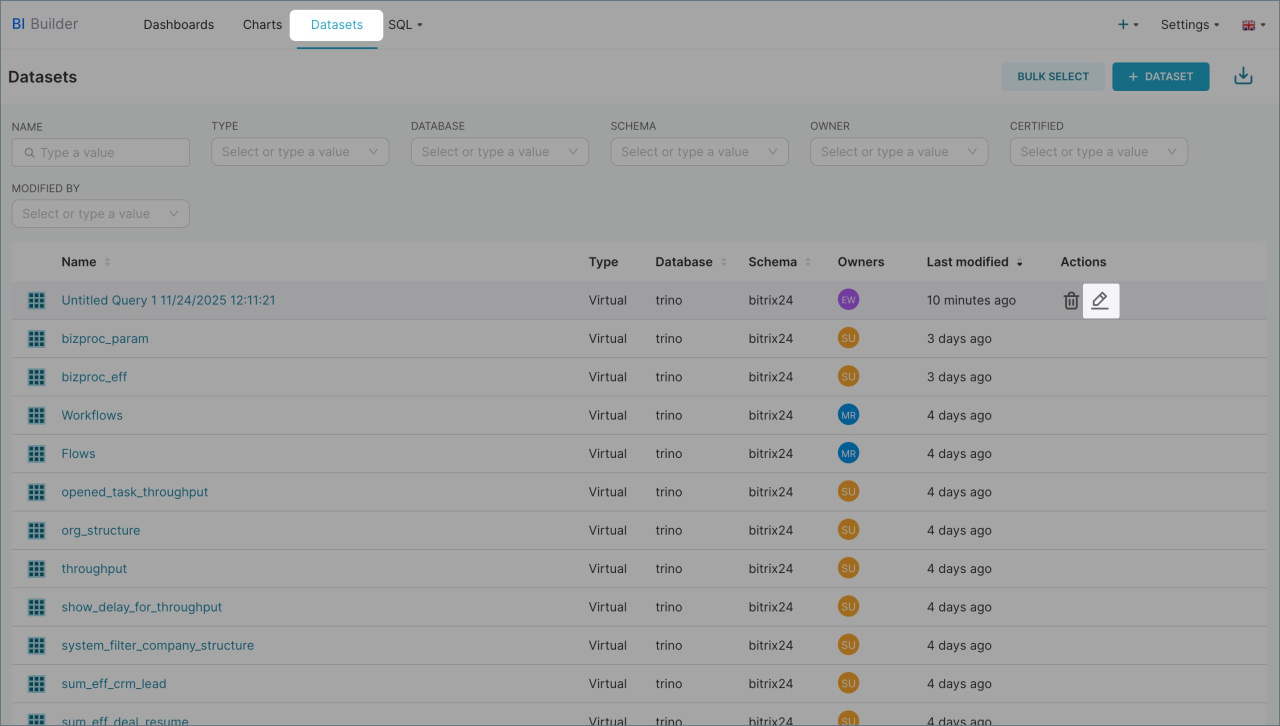 - Otwórz zakładkę Zestawy danych i wybierz jeden z nich.