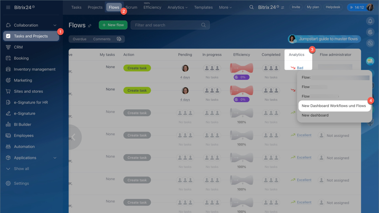 - Przejdź do sekcji Zadania i Projekty > Przepływy.