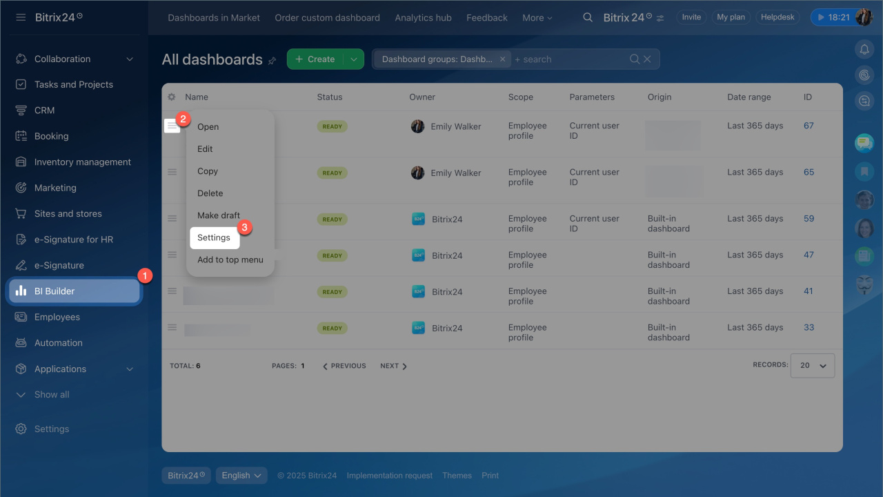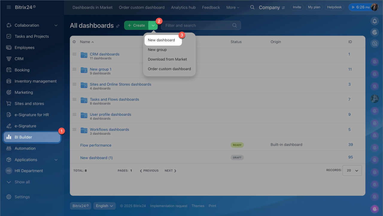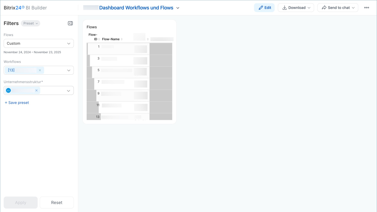 - Następnie dodaj filtry do raportu, otwórz go w Bitrix24 i upewnij się, że wyświetla dane tylko dla wybranego przepływu lub procesu.