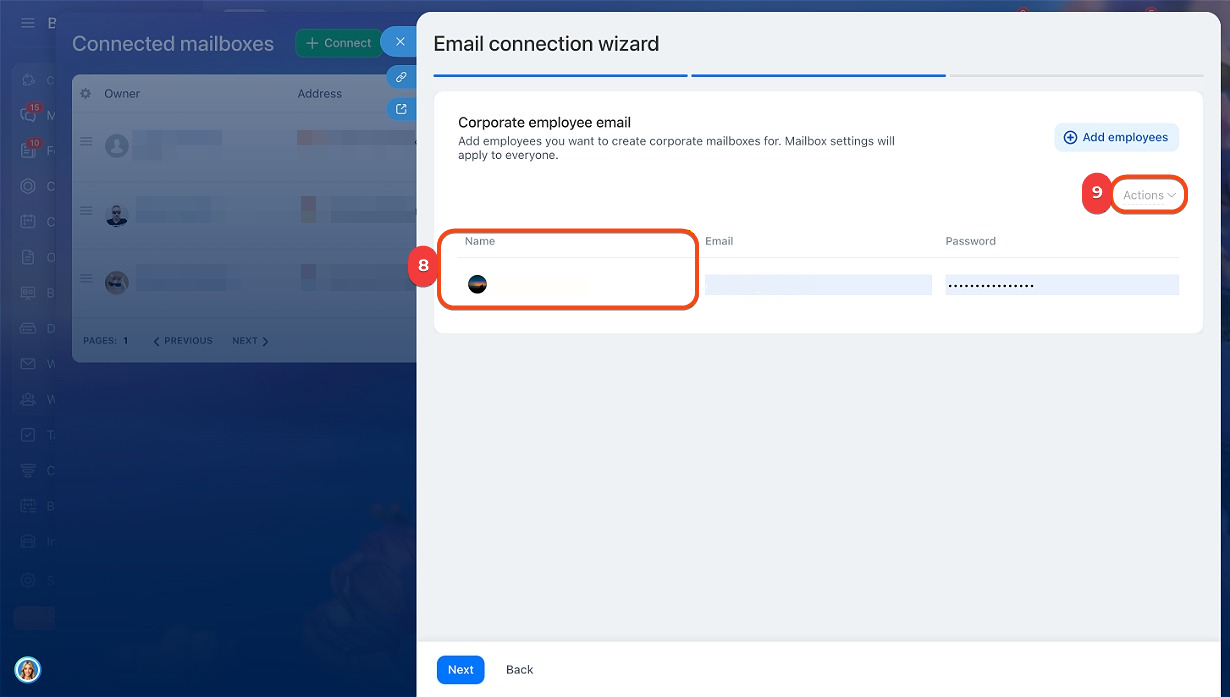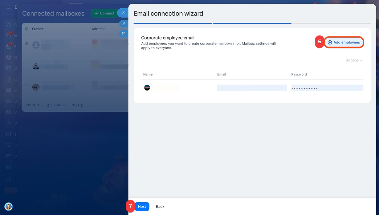 8. Wprowadź adres e-mail i hasło dla każdego pracownika. Jeśli w poczcie używa się hasła aplikacji — wprowadź je.