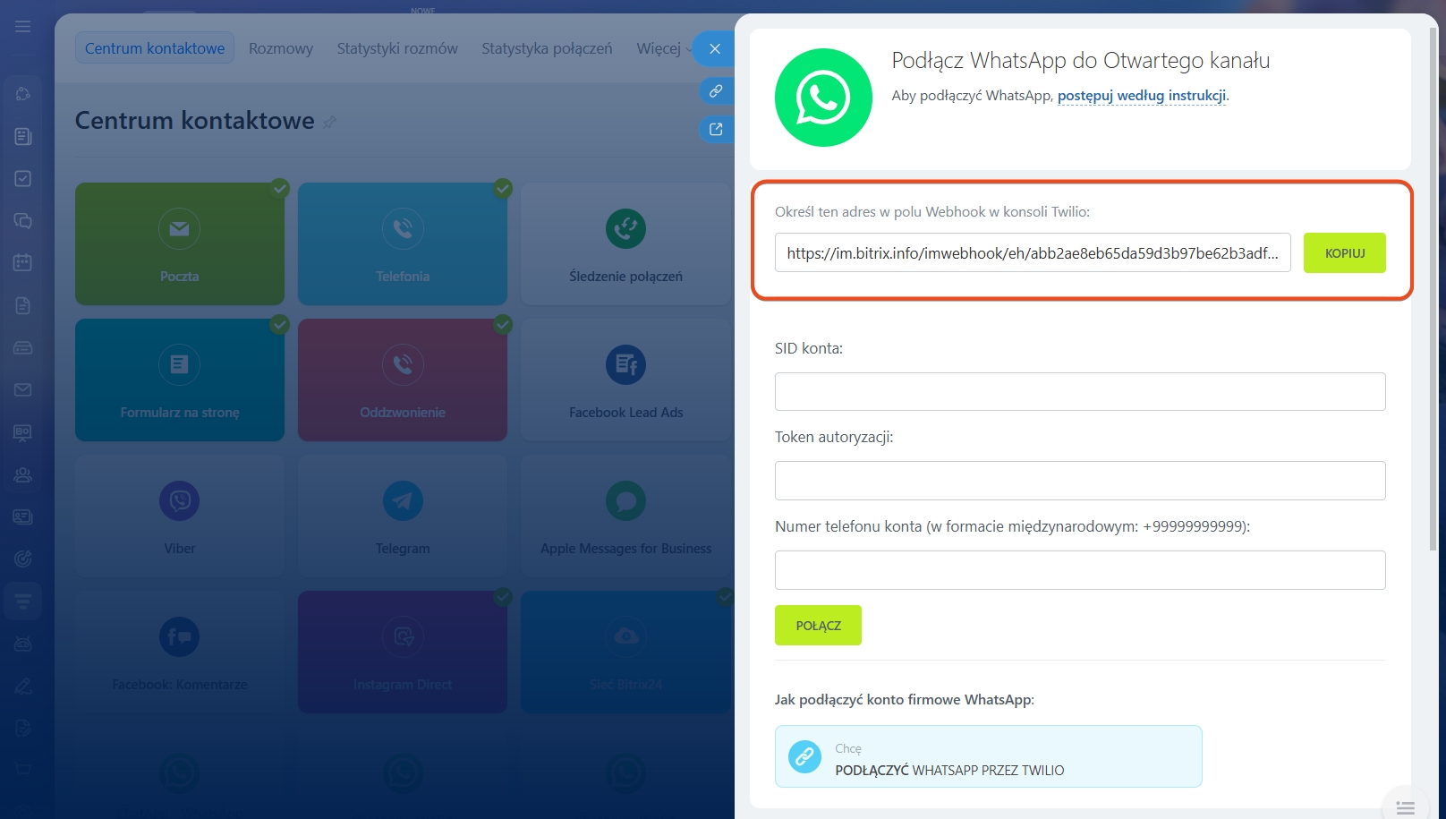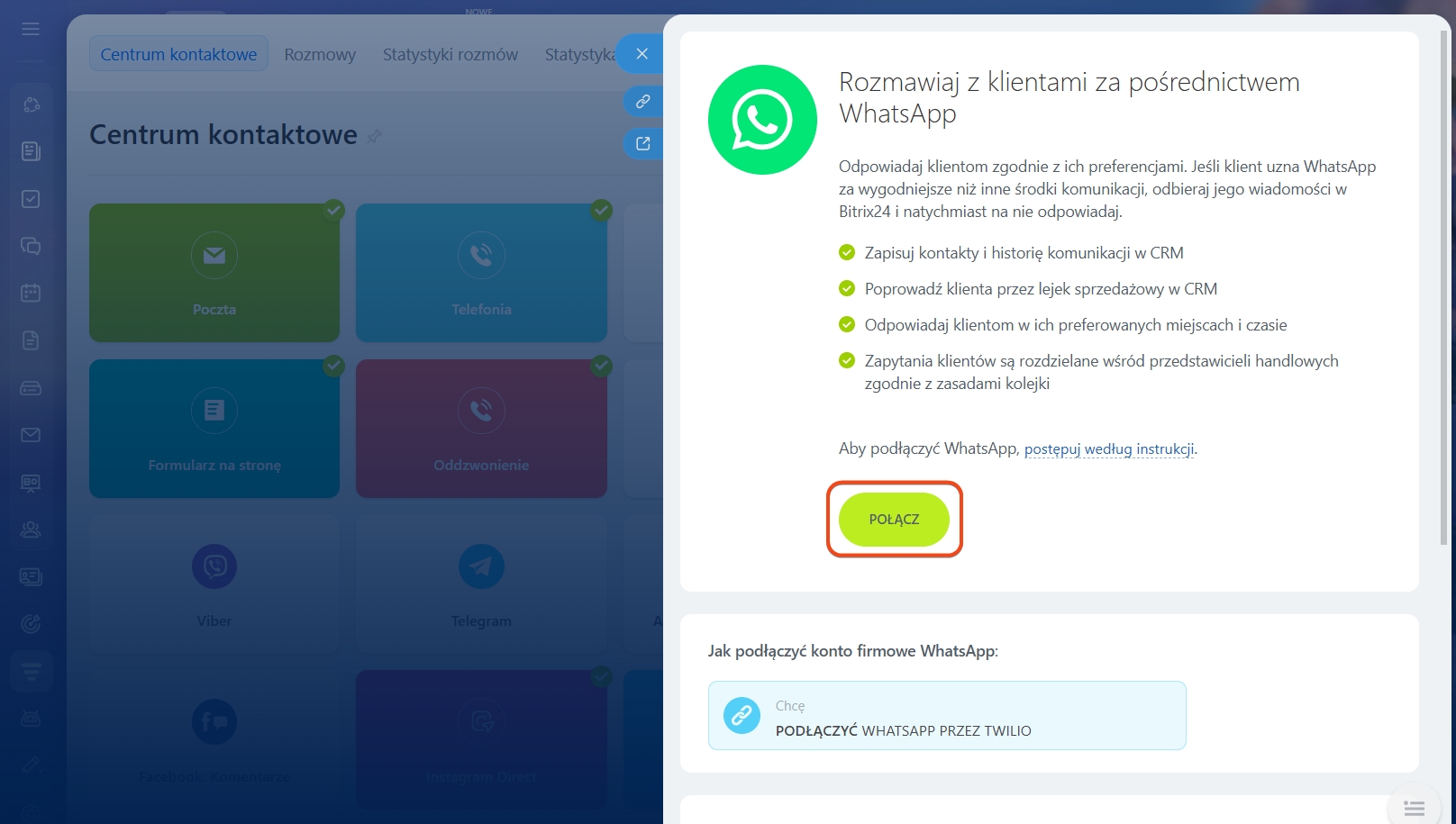 - WhatsApp został pomyślnie połączony z Twoim Bitrix24.