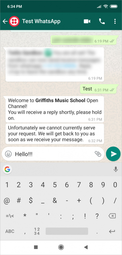 - Możesz używać wynajętego numeru Twilio (numeru podanego podczas łączenia WhatsApp) w swoich kampaniach marketingowych. Klienci będą mogli kontaktować się z Tobą bezpośrednio przez WhatsApp, bez użycia widżetu strony.
