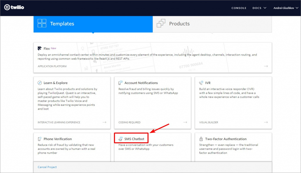 - Kliknij SMS Chatbot.