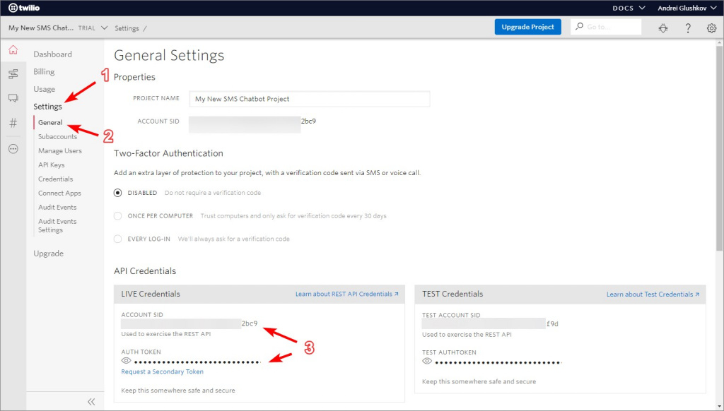 - ACCOUNT SID - ID konta;
