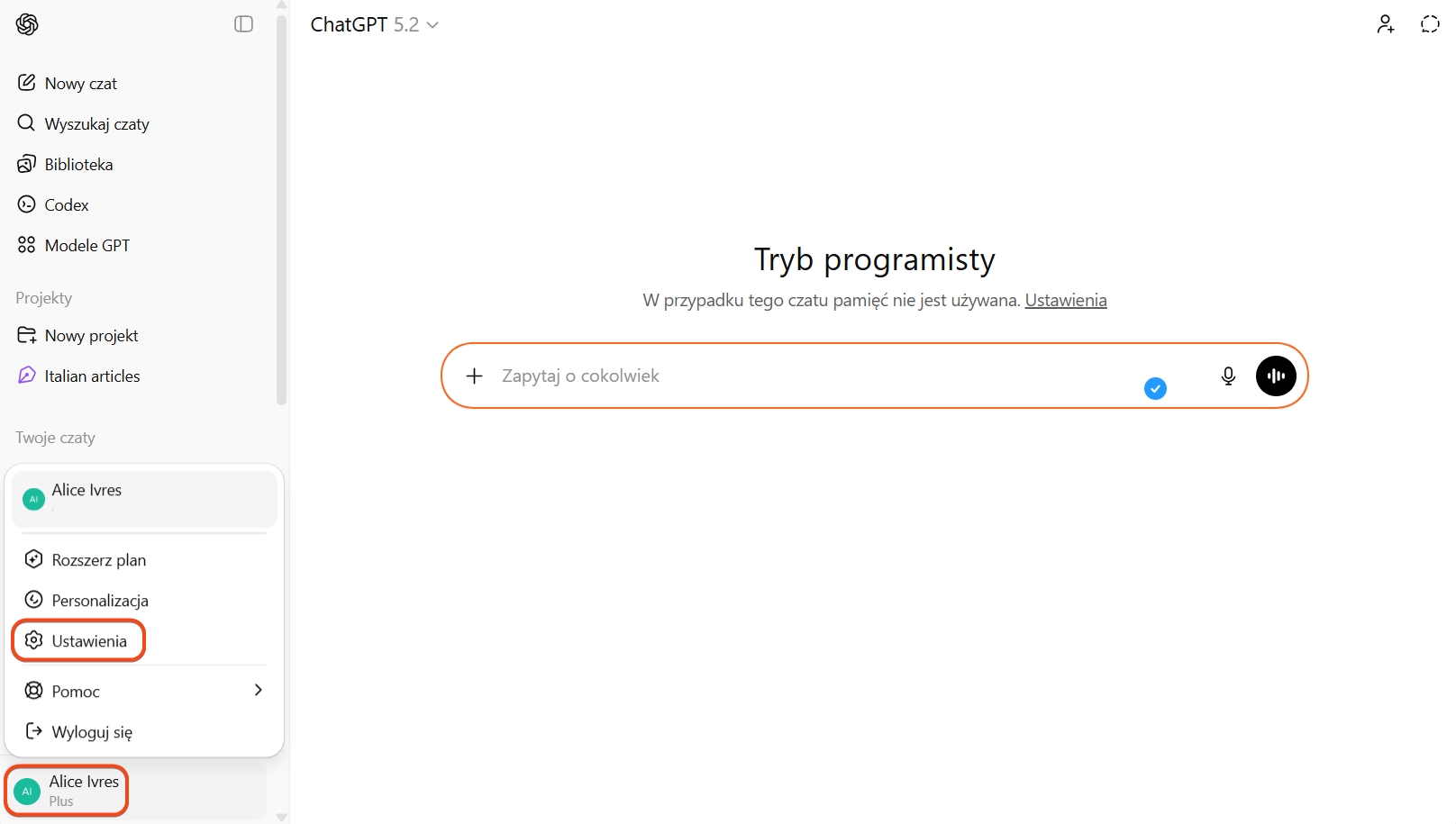 - Otwórz ChatGPT i przejdź do swojego profilu.