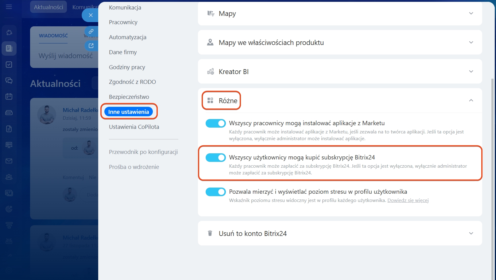 W Bitrix24 nie ma jeszcze możliwości ukrycia widżetu Mój plan przed pracownikami, ale można ograniczyć dostęp do opłacania planu. Może to zrobić administrator Bitrix24.