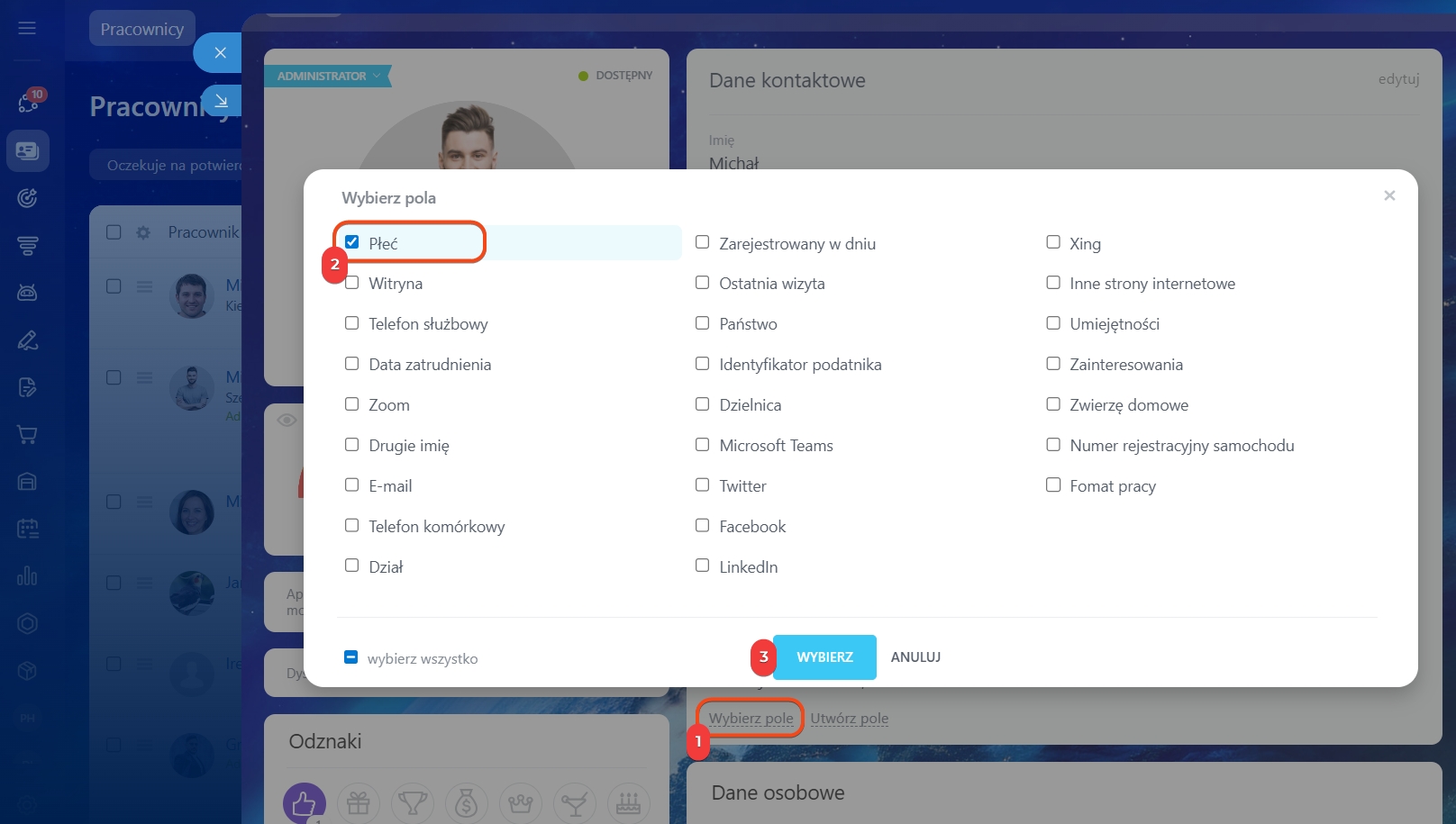 W Bitrix24 nie można ukryć poszczególnych pól profilu tylko przed częścią pracowników. Ustawienia widoczności są wspólne dla wszystkich: administrator określa, które pola są widoczne w profilu, a te zasady są stosowane jednakowo dla wszystkich pracowników.