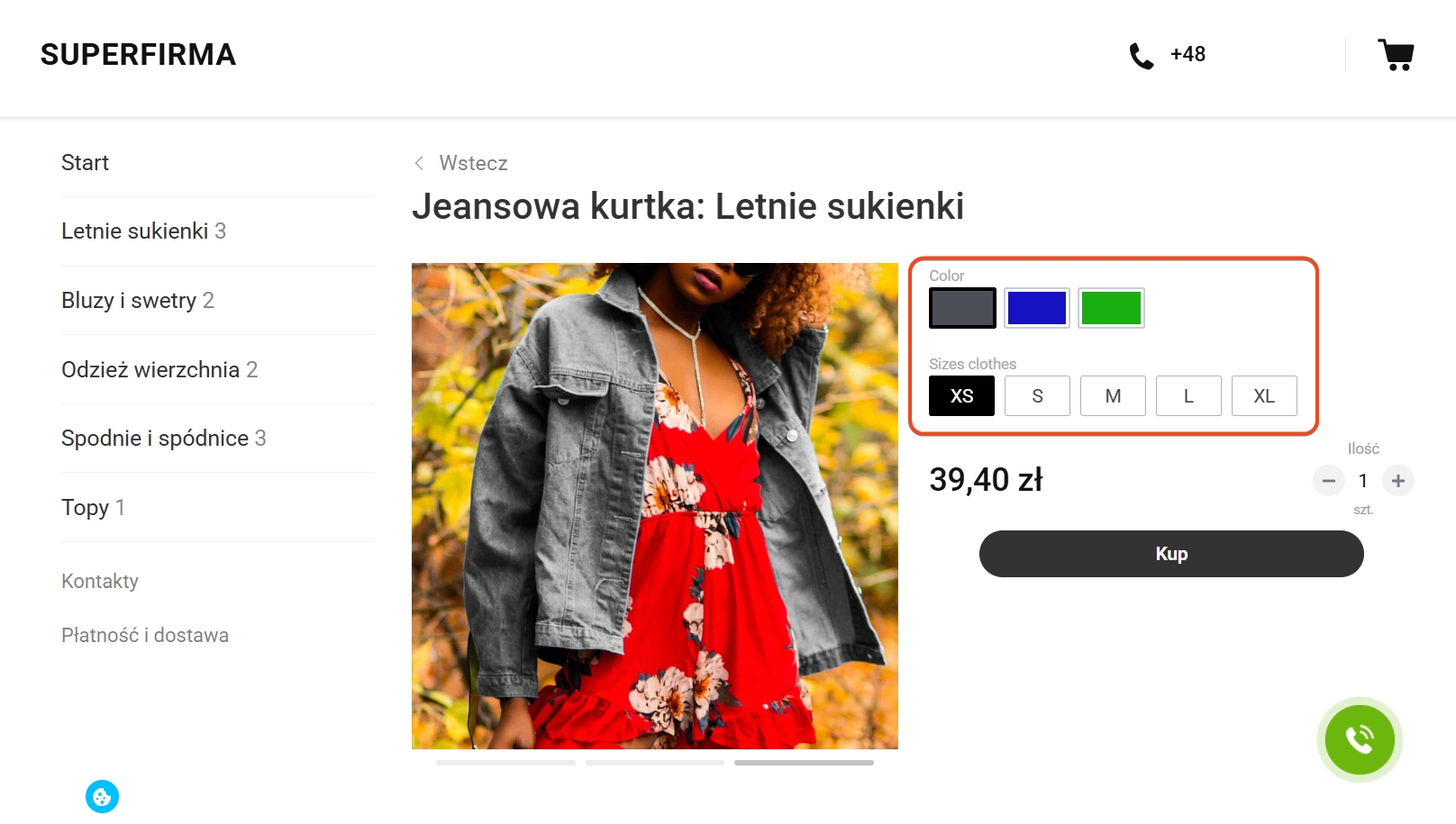 Tak. Możesz skonfigurować właściwości — osobne wersje jednego produktu o różnych cechach: rozmiarze, kolorze, materiale lub innych parametrach. Dzięki temu klient nie będzie musiał szukać podobnych pozycji na stronie: otworzy formularz produktu i wybierze odpowiednią opcję.