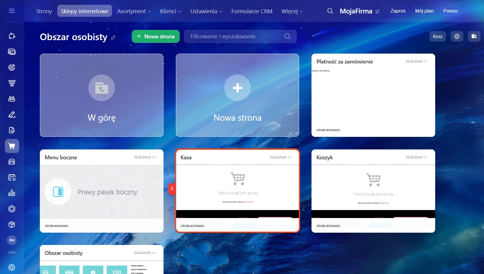 - Wróć do obszaru osobistego i otwórz stronę Kasa.