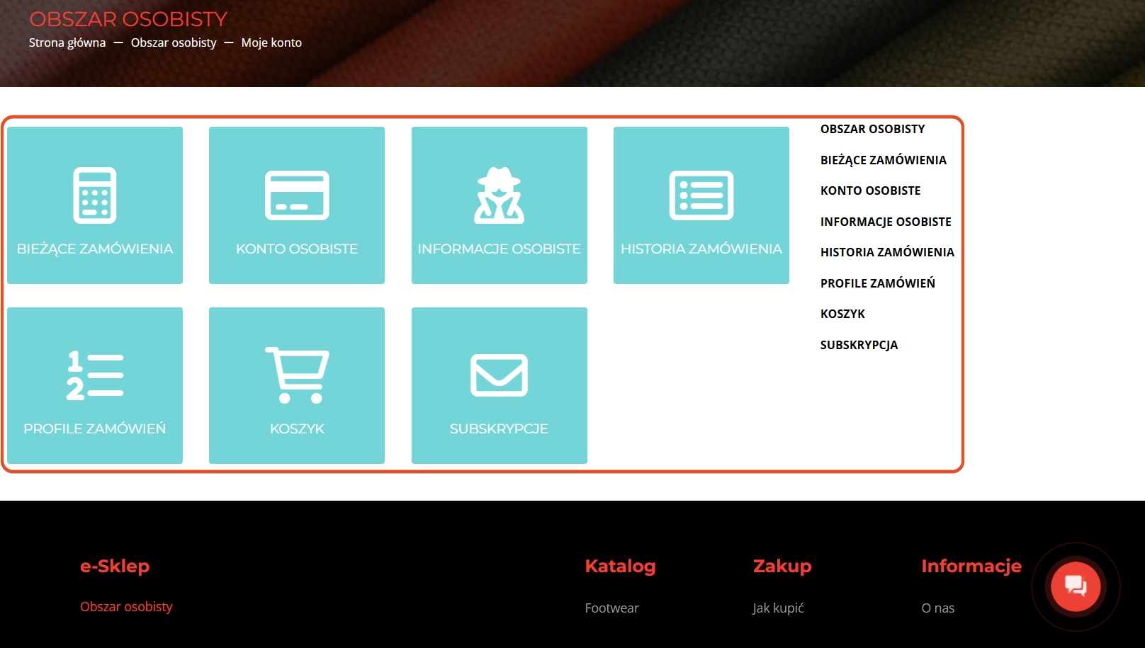- Otwórz odpowiedni sklep internetowy i przejdź do Obszaru osobistego.