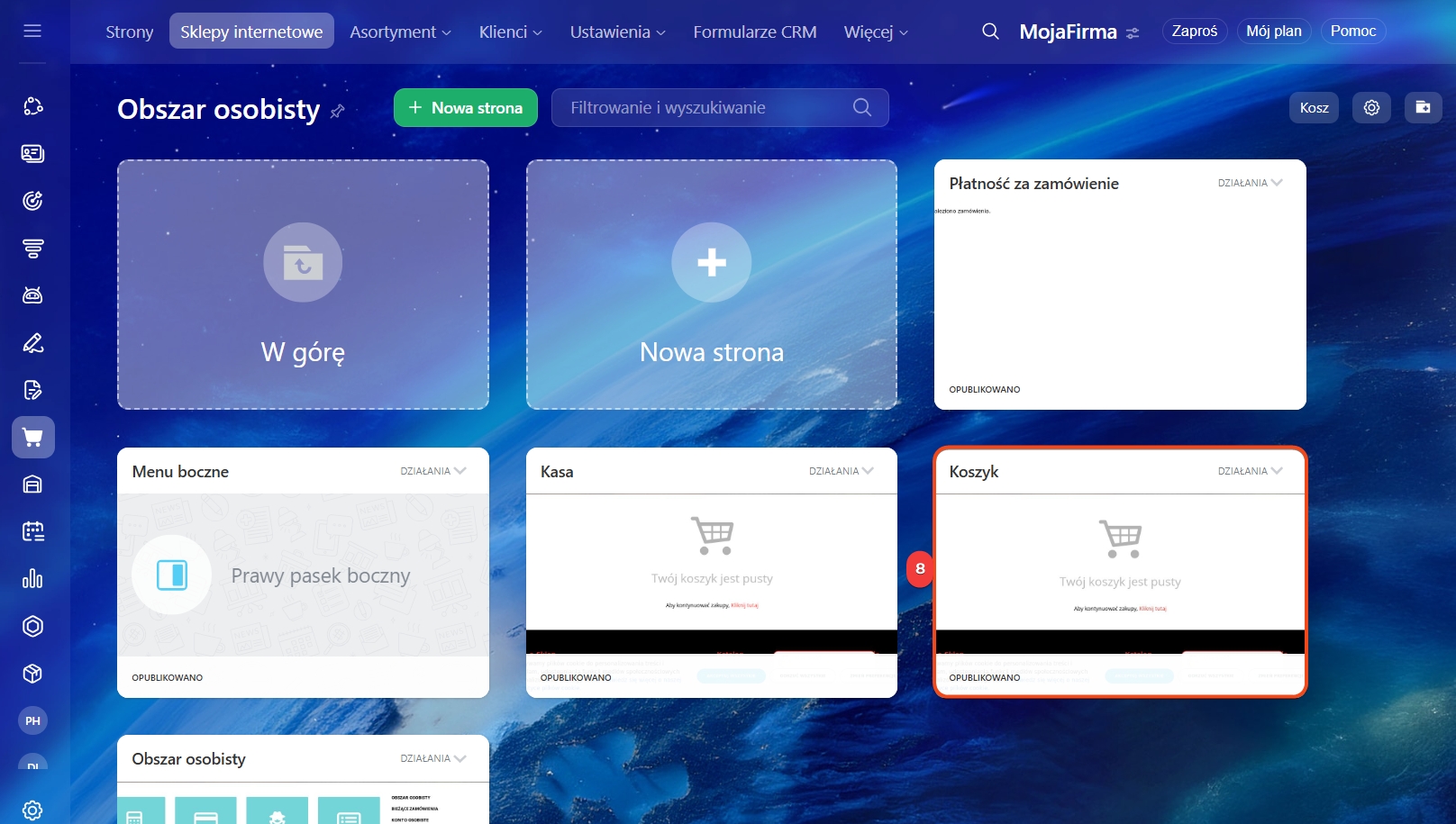 Przejdź do strony Strony i Sklepy > Ustawienia > Ustawienia zaawansowane > Reguły koszyka.