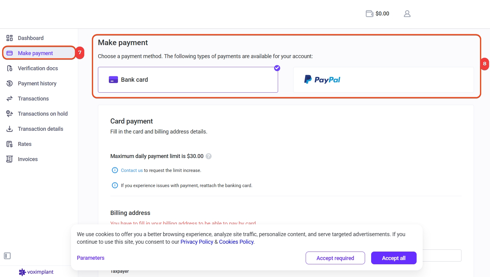 7–8. Kliknij Sposoby płatności i wybierz odpowiednią opcję: kartą bankową lub przelewem bankowym.