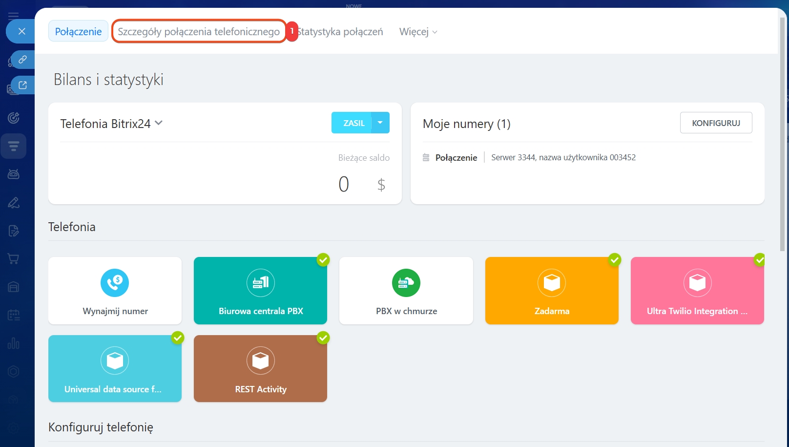 Saldo Telefonii możesz sprawdzić i doładować bezpośrednio w Bitrix24.