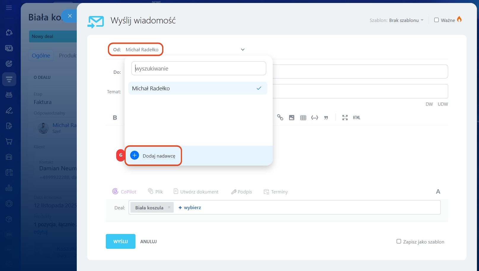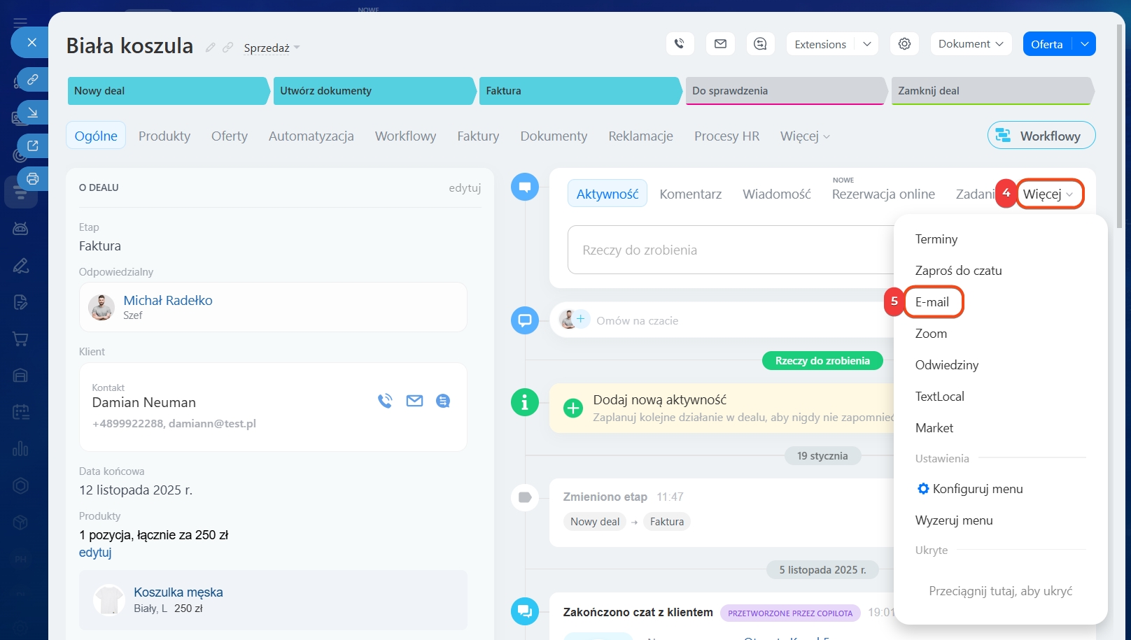 1–3. Przejdź do CRM → Deale i otwórz dowolny formularz deala.