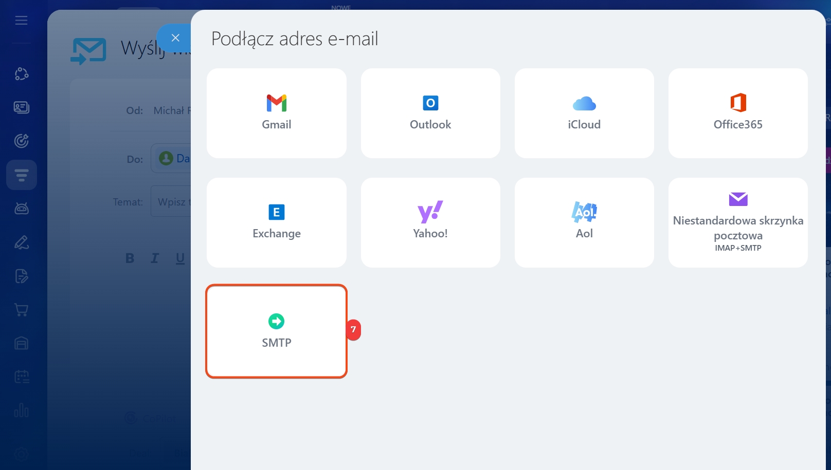 Do wysyłania wiadomości możesz użyć skrzynki podłączonej w sekcji Poczta albo skonfigurować nadawcę przez SMTP.