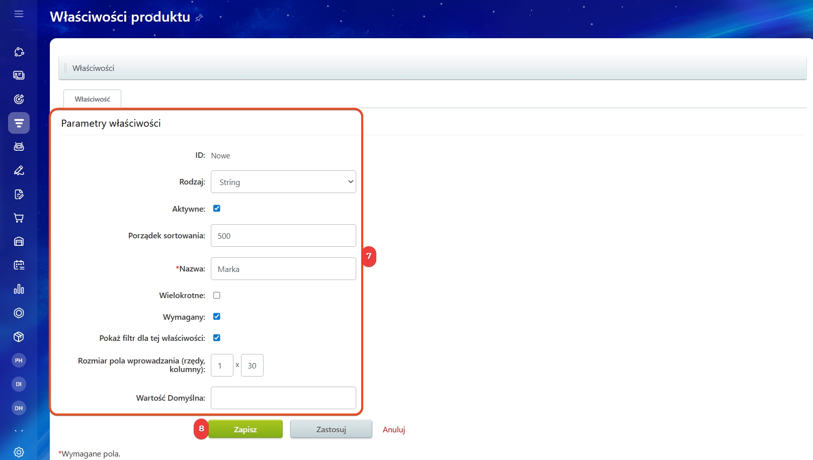 - Pokazuj w sklepie internetowym — właściwość będzie dostępna w filtrach sklepu