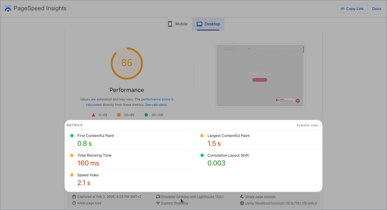 2. Wklej adres witryny w wybranym narzędziu i uruchom test.