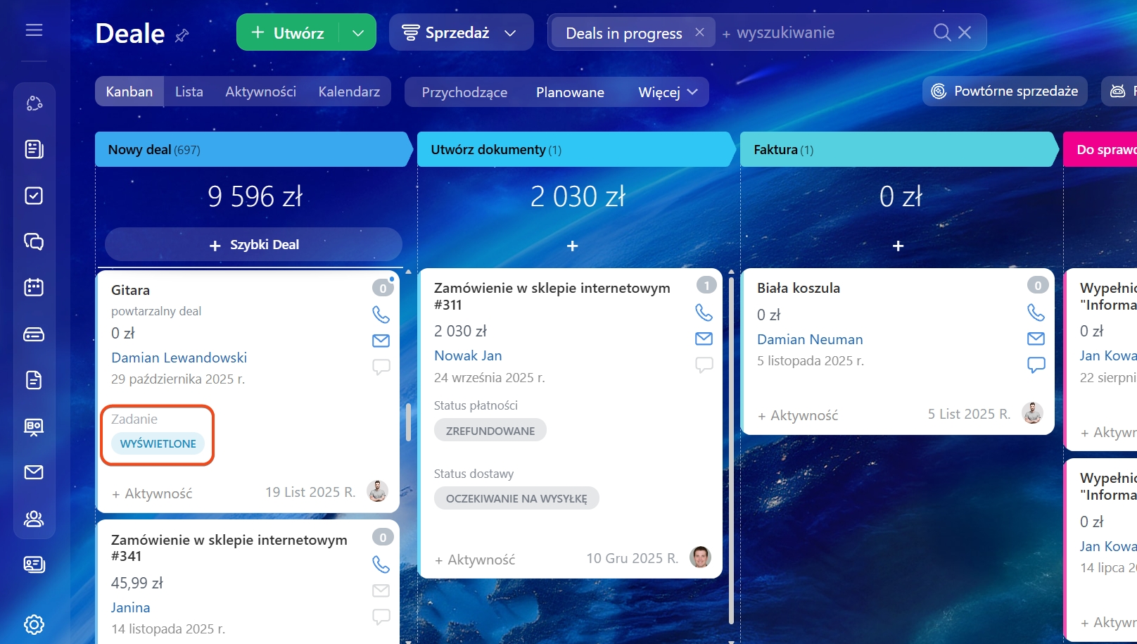Zadania w CRM
