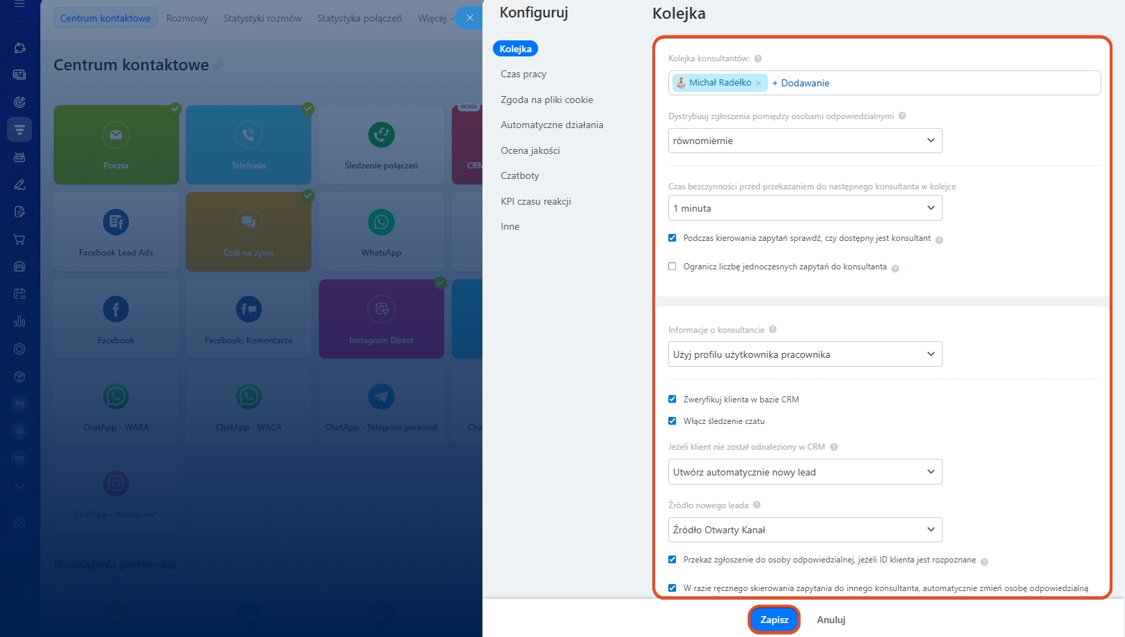 Po zapisaniu Bitrix24 zacznie automatycznie rozdzielać zapytania według wybranych zasad.