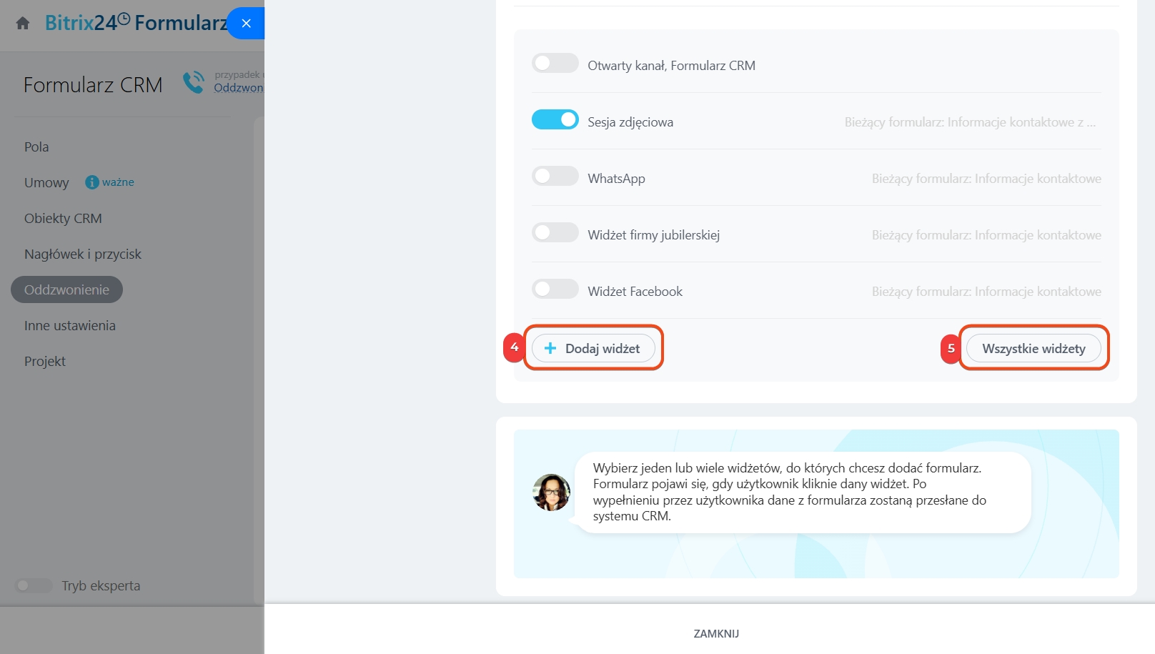 Formularz oddzwonienia może utworzyć administrator Bitrix24 oraz pracownicy z uprawnieniem do edycji formularzy CRM.