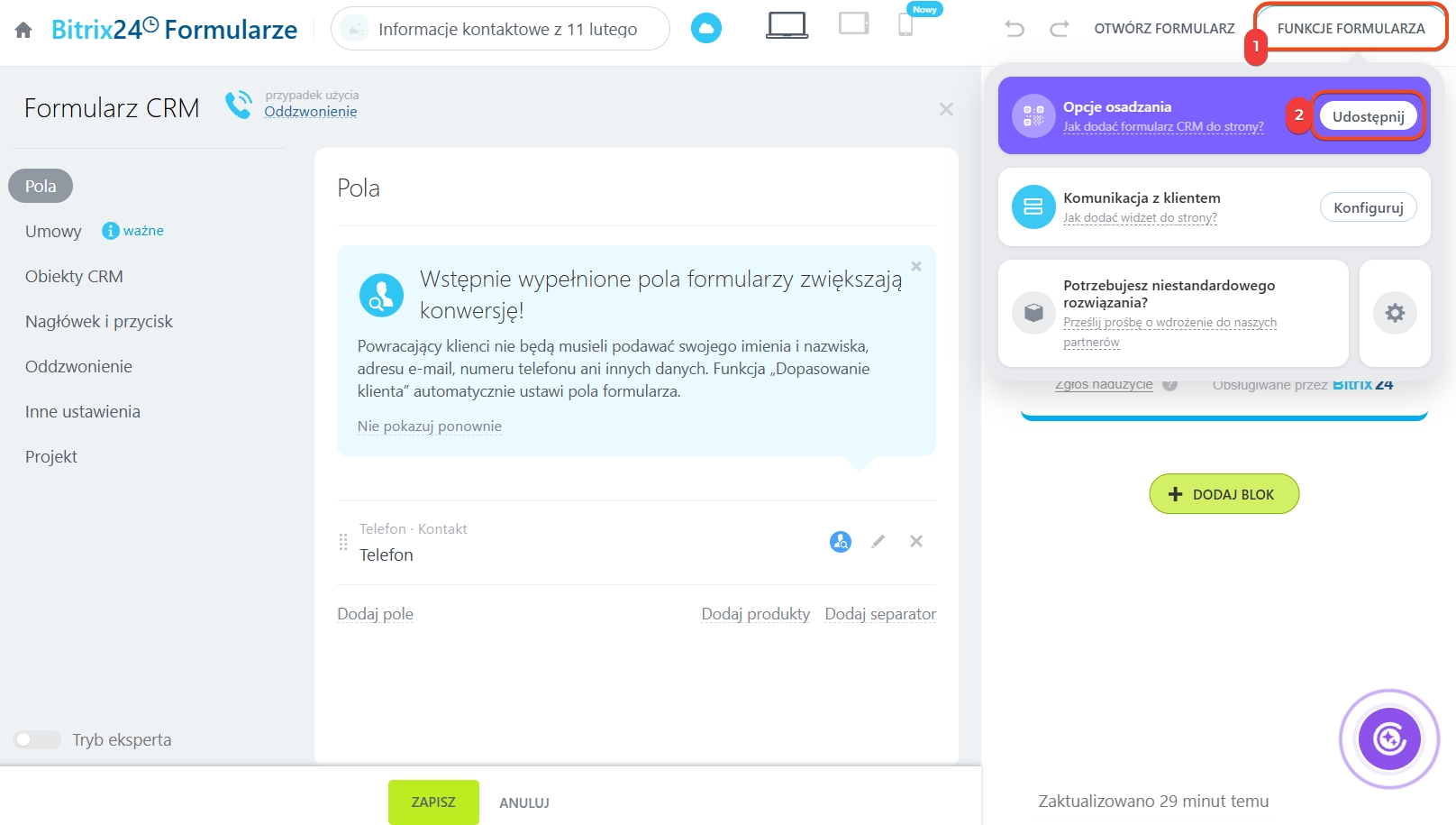 Jak skonfigurować formularz CRM