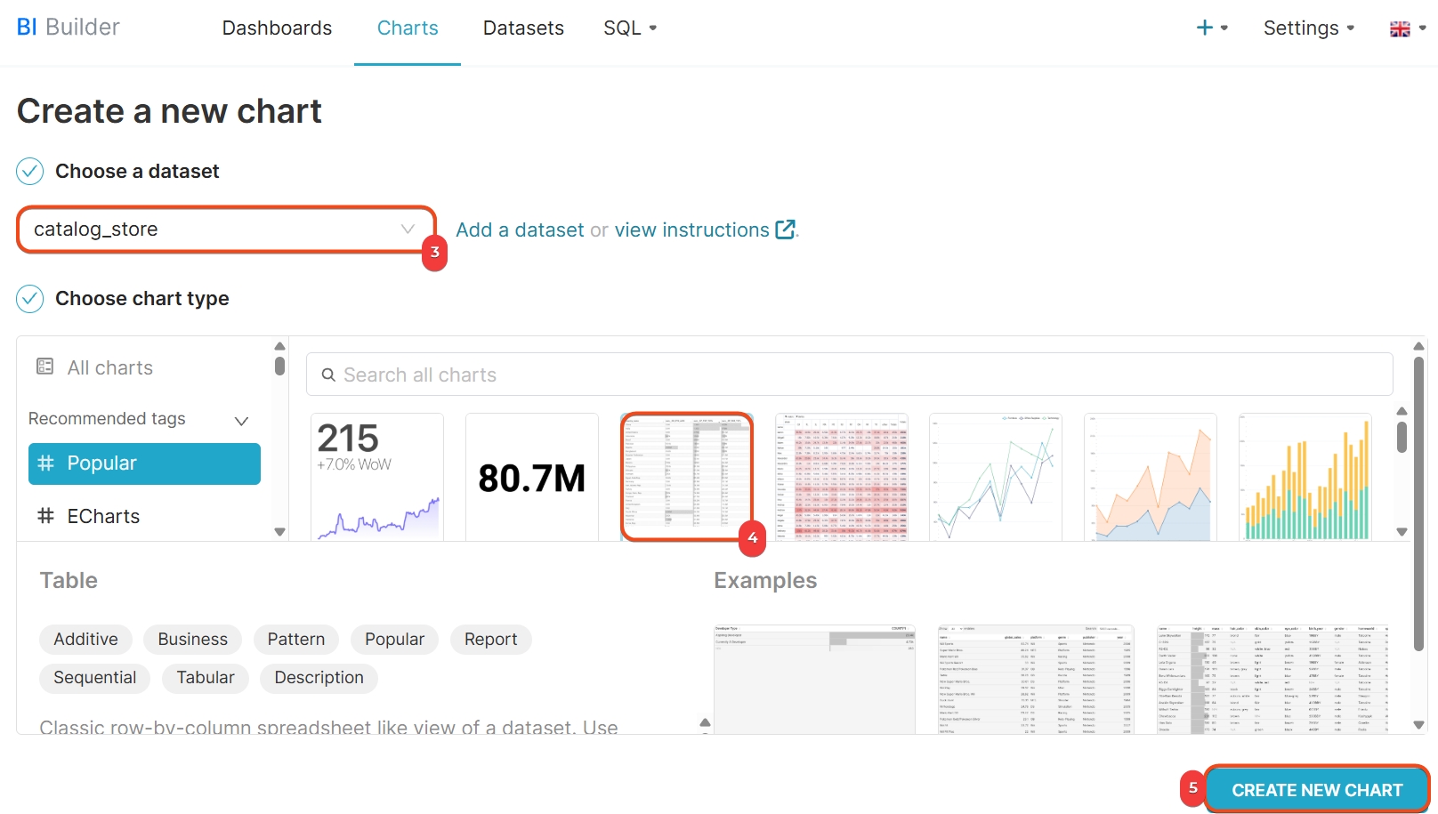 Jak utworzyć zestaw danych - 5. Kliknij Utwórz nowy wykres.