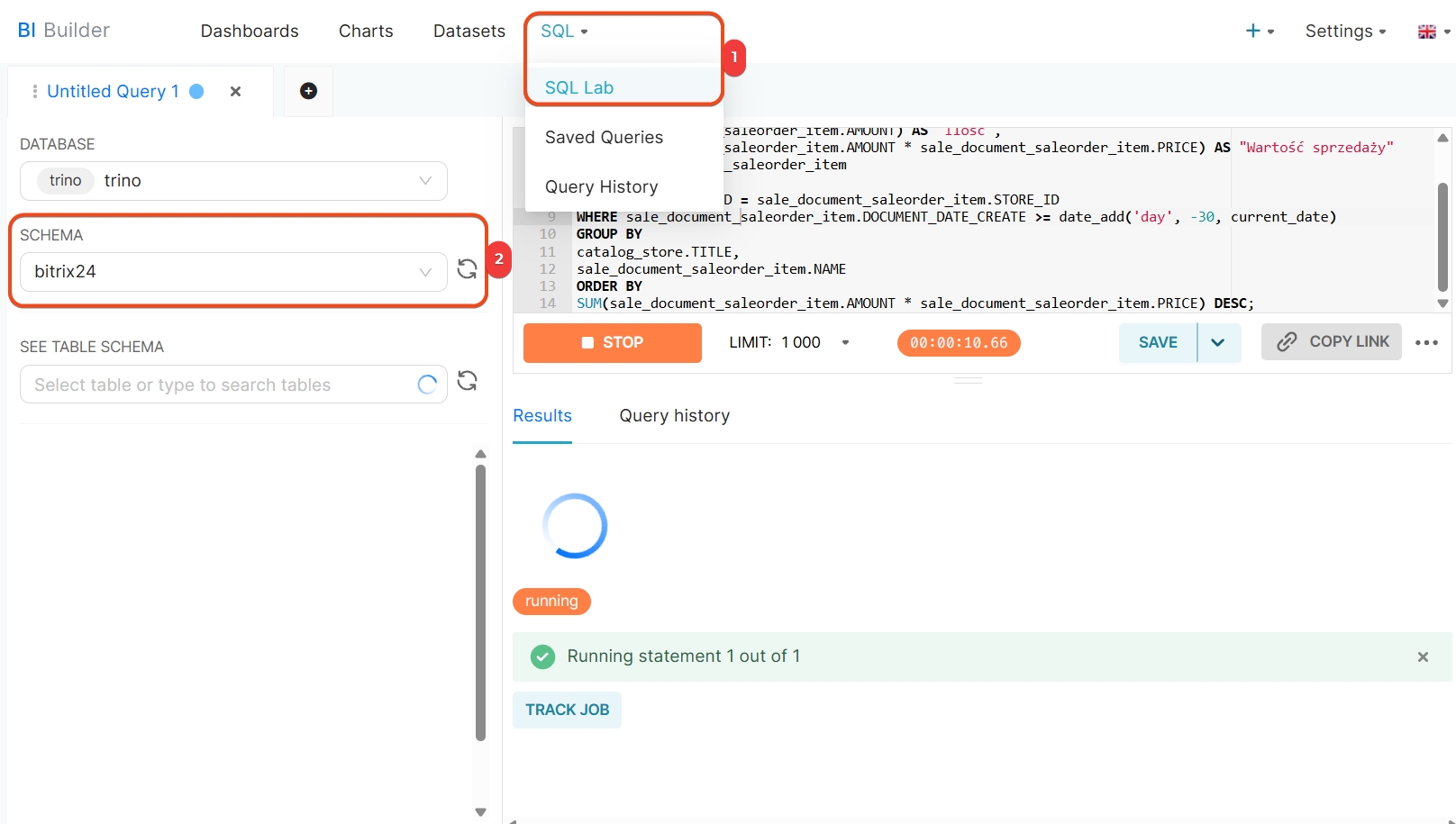 - Otwórz Kreator BI i przejdź do sekcji SQL > SQL Lab.