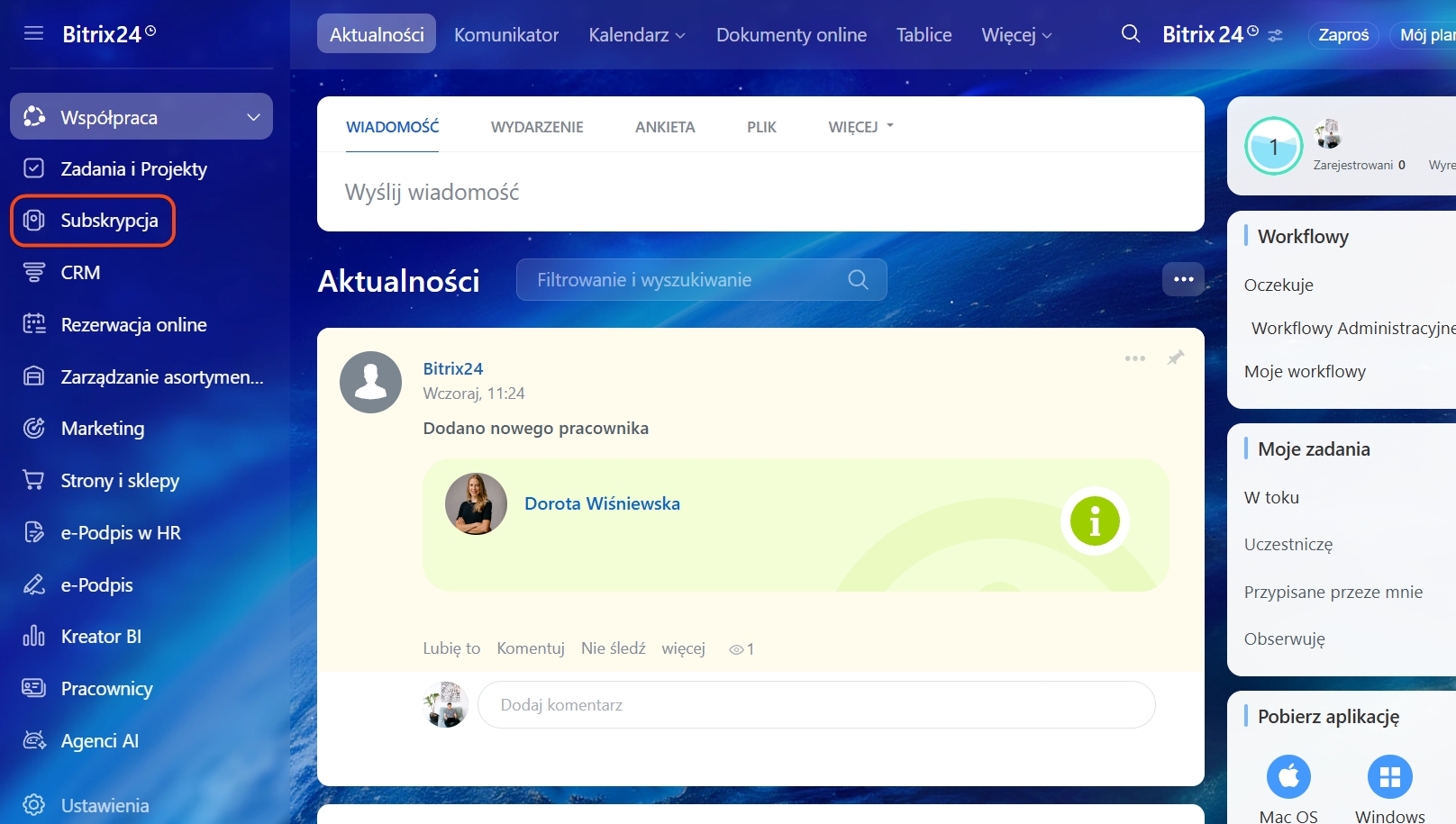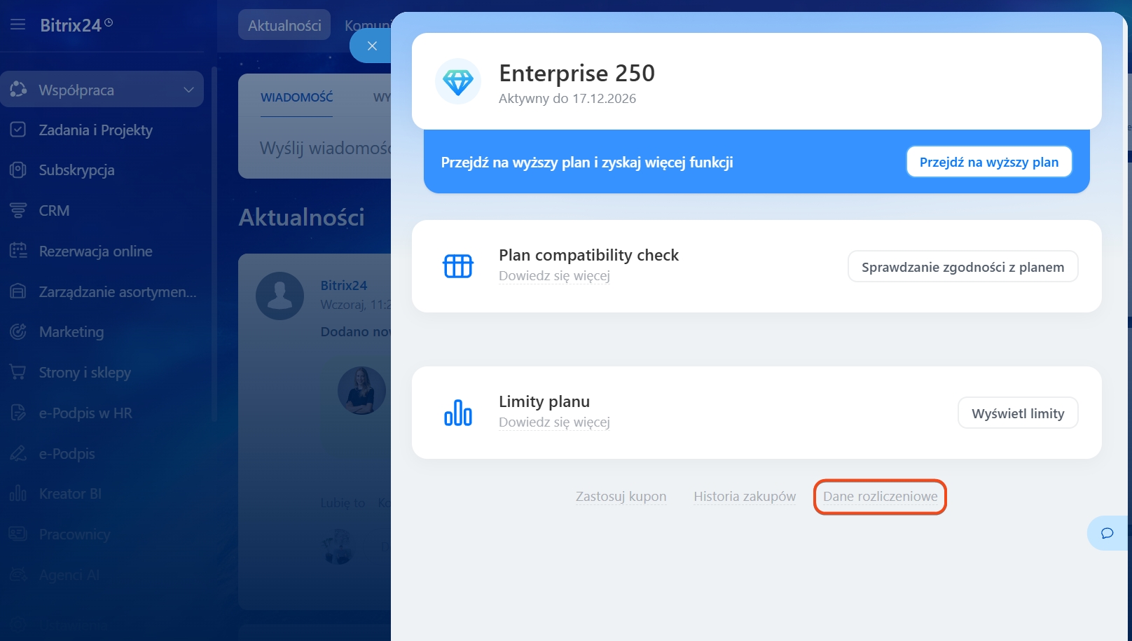 Aby zaktualizować dane płatności lub rozliczeniowe, przejdź do sekcji Subskrypcja → Dane rozliczeniowe.
