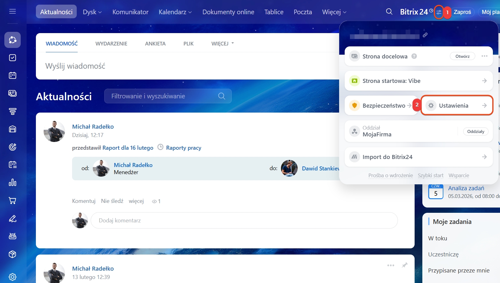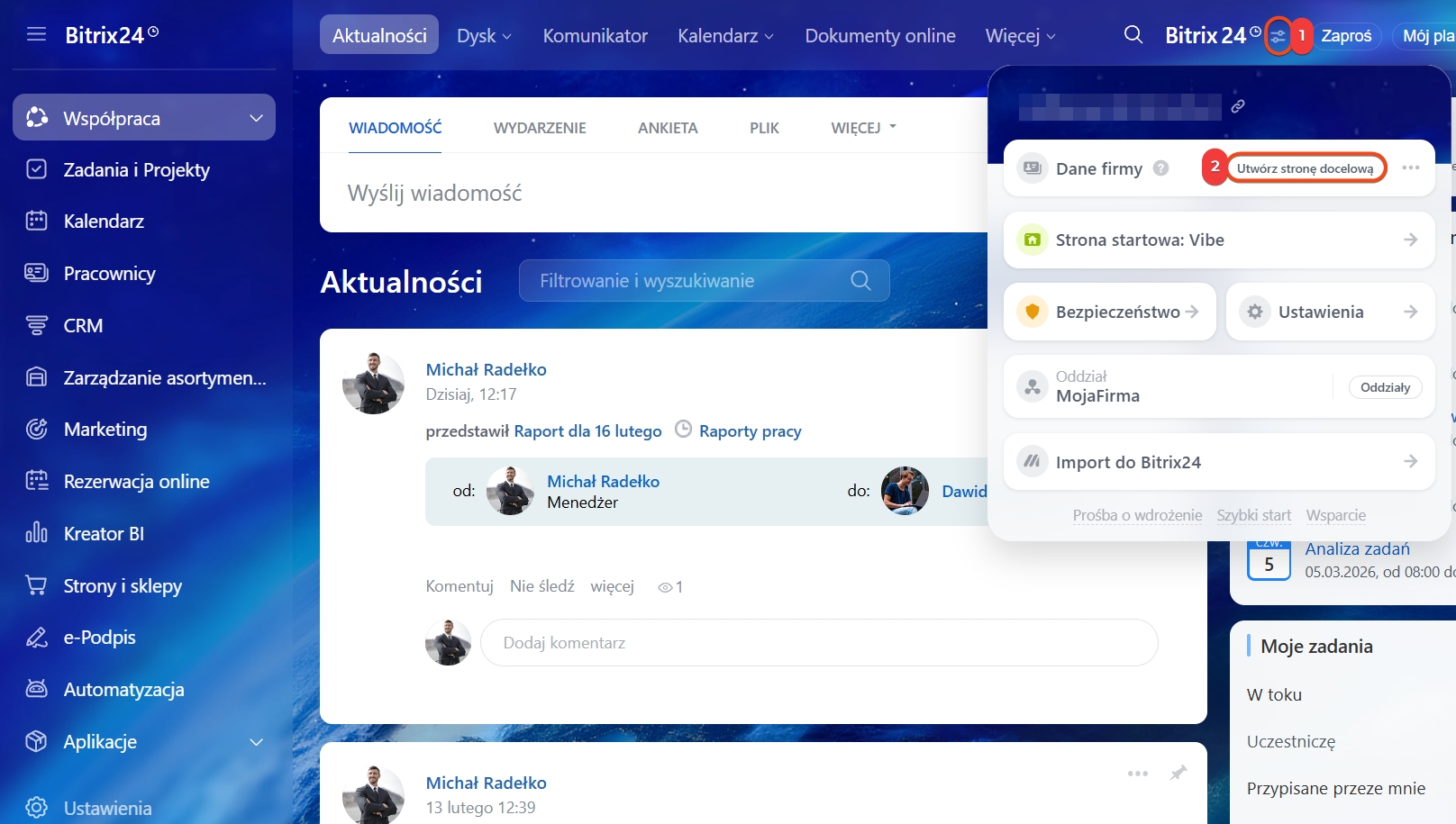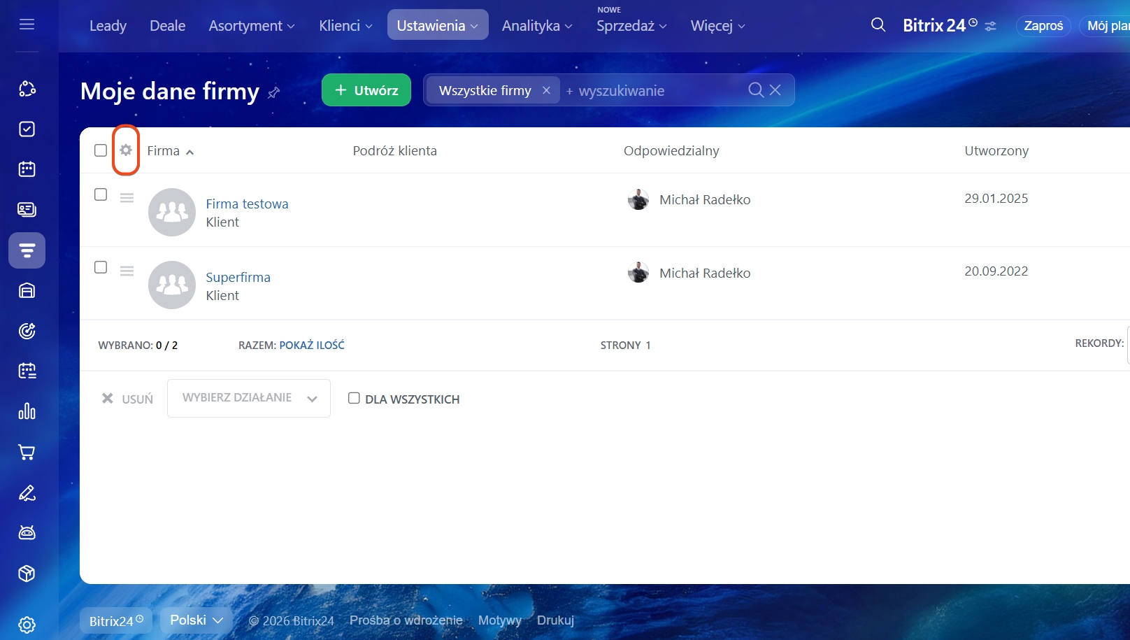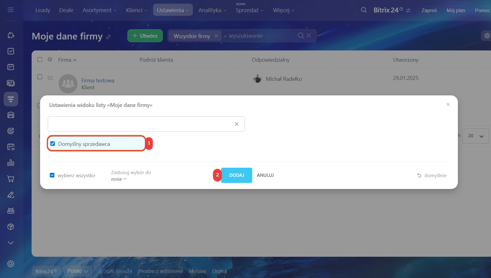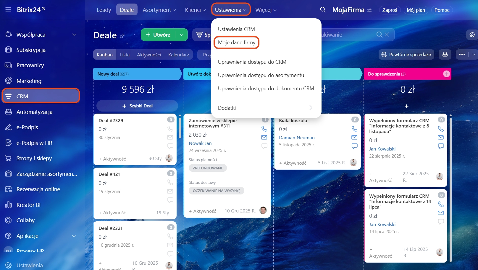 1–4. Przejdź do CRM > Ustawienia > Moje dane firmy.