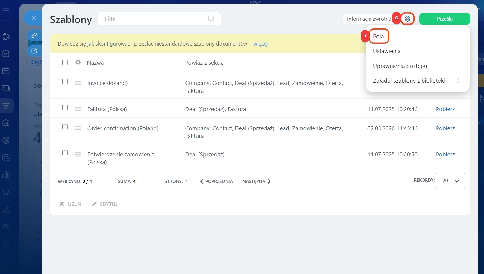 Jak przesłać swój szablon dokumentu do CRM