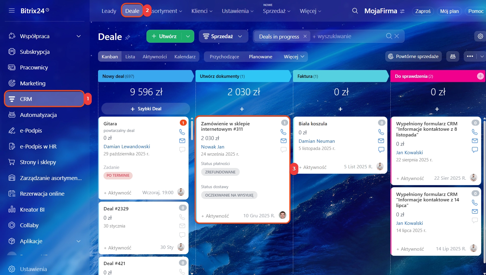 1–2. Przejdź do sekcji CRM → Deale.