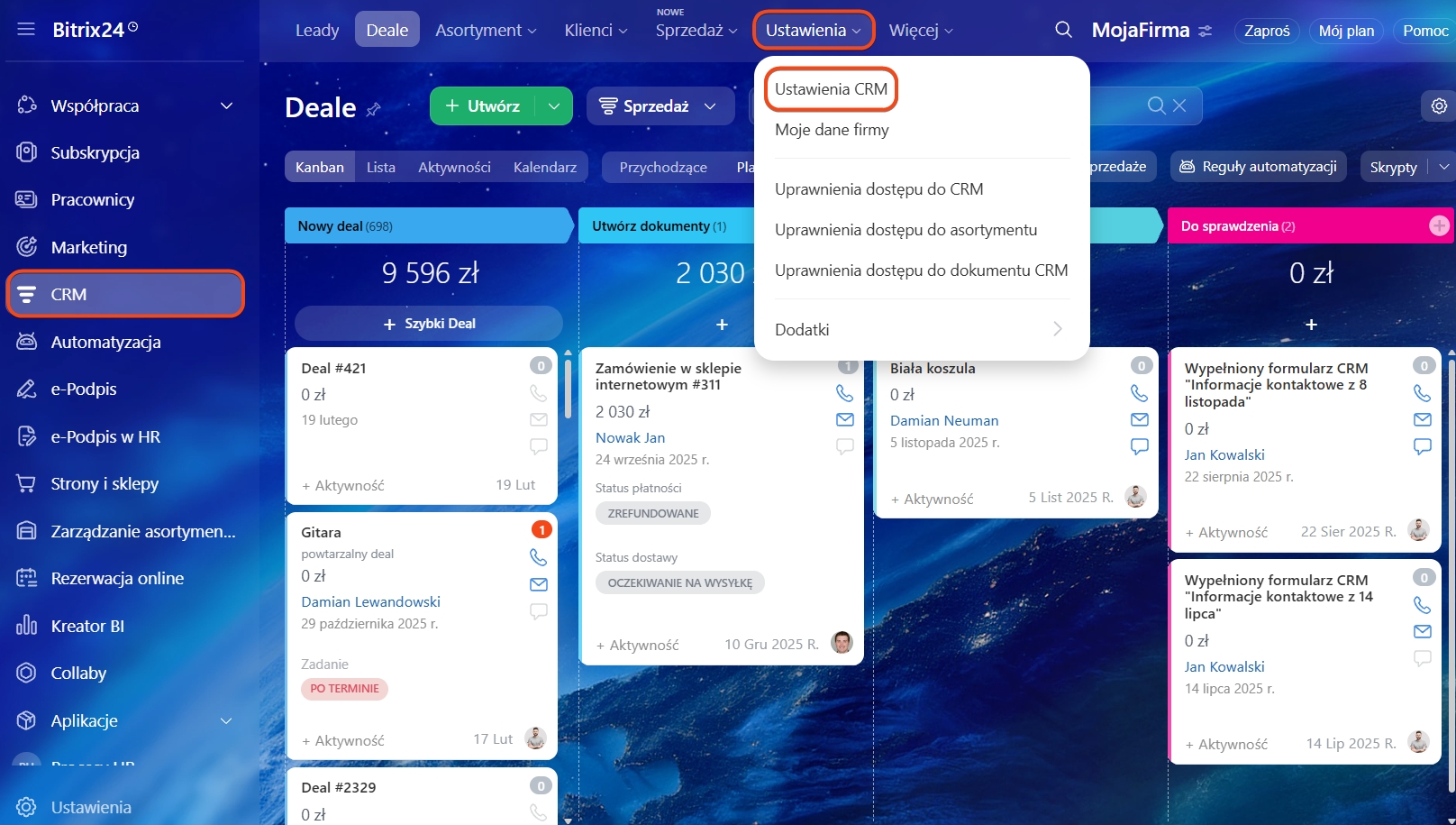 1–4. Przejdź do sekcji CRM → Więcej → Ustawienia → Ustawienia CRM.