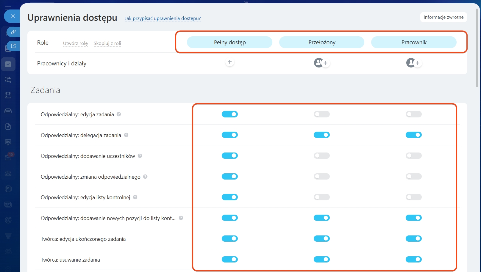 Zadania – uprawnienia decydują, co pracownicy mogą robić z zadaniami.