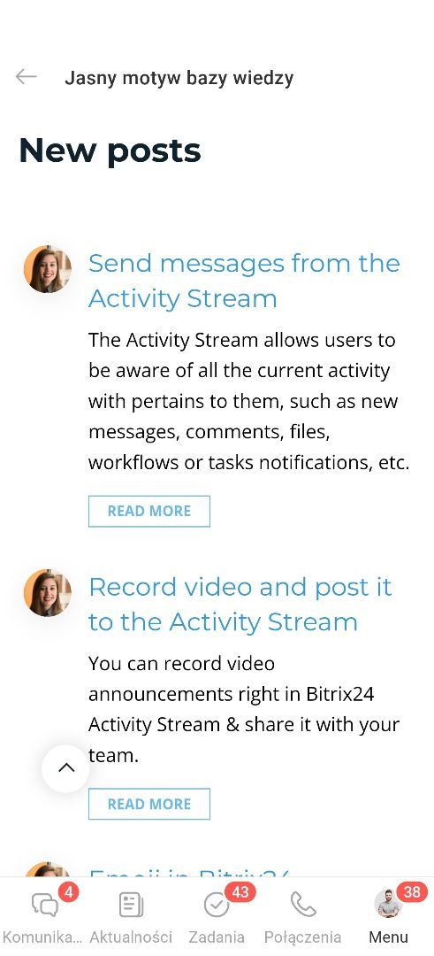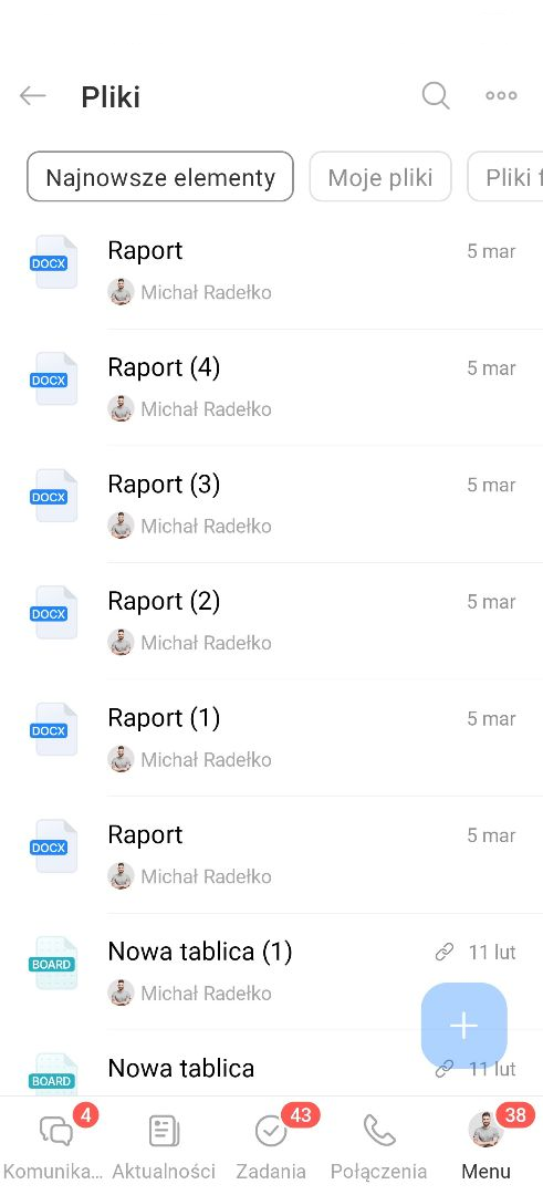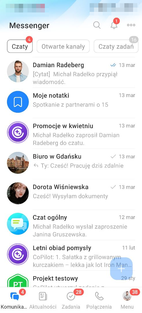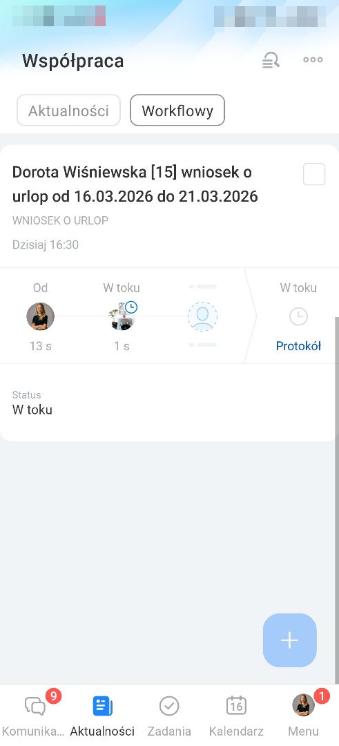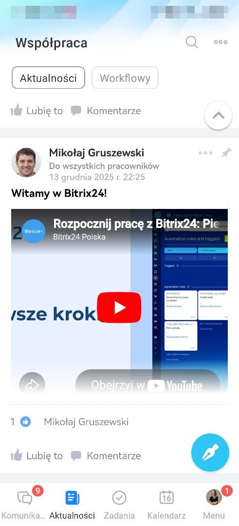 Aktualności to miejsce wymiany informacji wewnątrz firmy. Znajdziesz tu posty współpracowników, wspólne wydarzenia, raporty i uruchomione procesy. Na kanale możesz czytać i publikować wpisy, dodawać komentarze oraz reakcje.