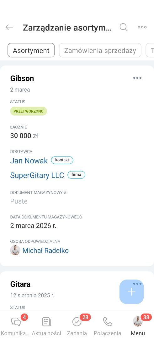 Zarządzanie asortymentem. W tej sekcji sprawdzisz dane o przyjęciach, przesunięciach, sprzedaży i odpisu produktów.
