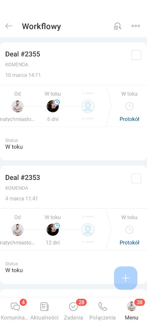 W aplikacji mobilnej przeglądasz, tworzysz, edytujesz, przenosisz i usuwasz formularze takich procesów oraz planujesz do nich Aktywności w CRM.