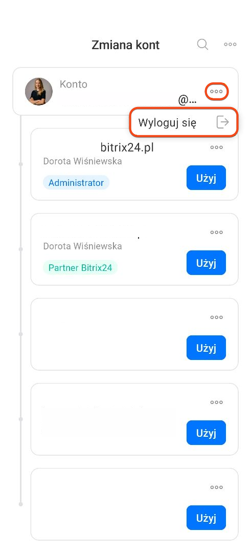 Wyloguj się. Przy następnym uruchomieniu aplikacji mobilnej Bitrix24 będzie wymagane ponowne zalogowanie.