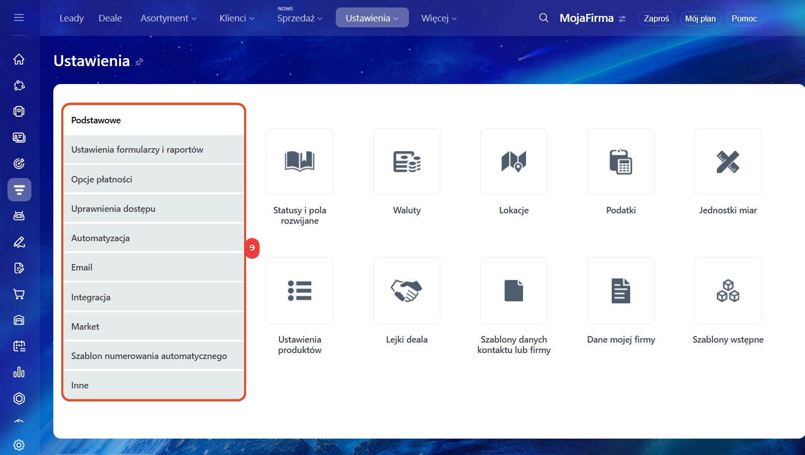 Nadaj uprawnienia do zmiany ustawień CRM. Ta opcja jest odpowiednia, jeśli pracownik będzie pracować wyłącznie z CRM: konfigurować lejki sprzedażowe, etapy, pola i inne elementy.