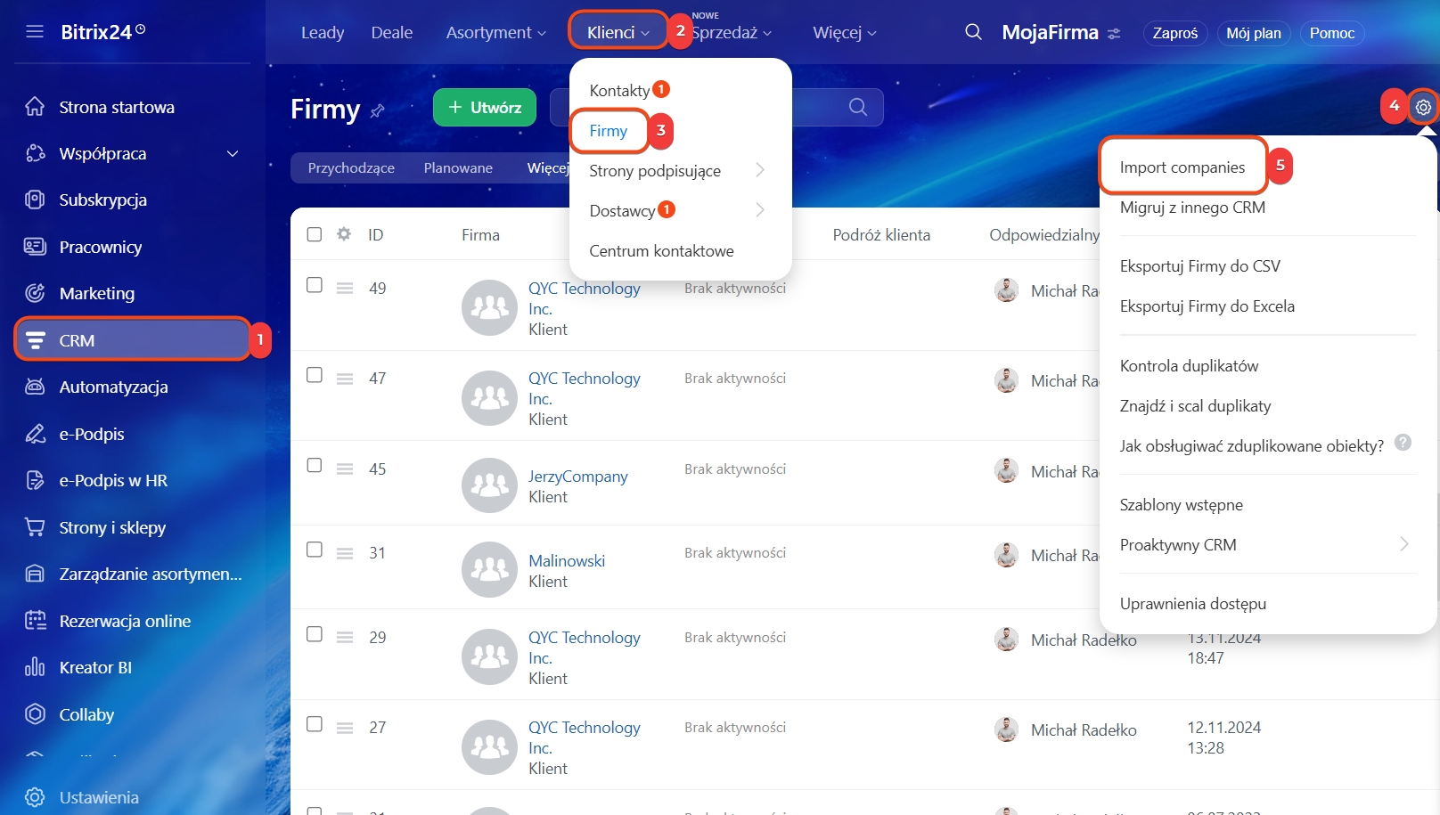 Import to proces wgrywania elementów CRM do Bitrix24. Dzięki niemu możesz: