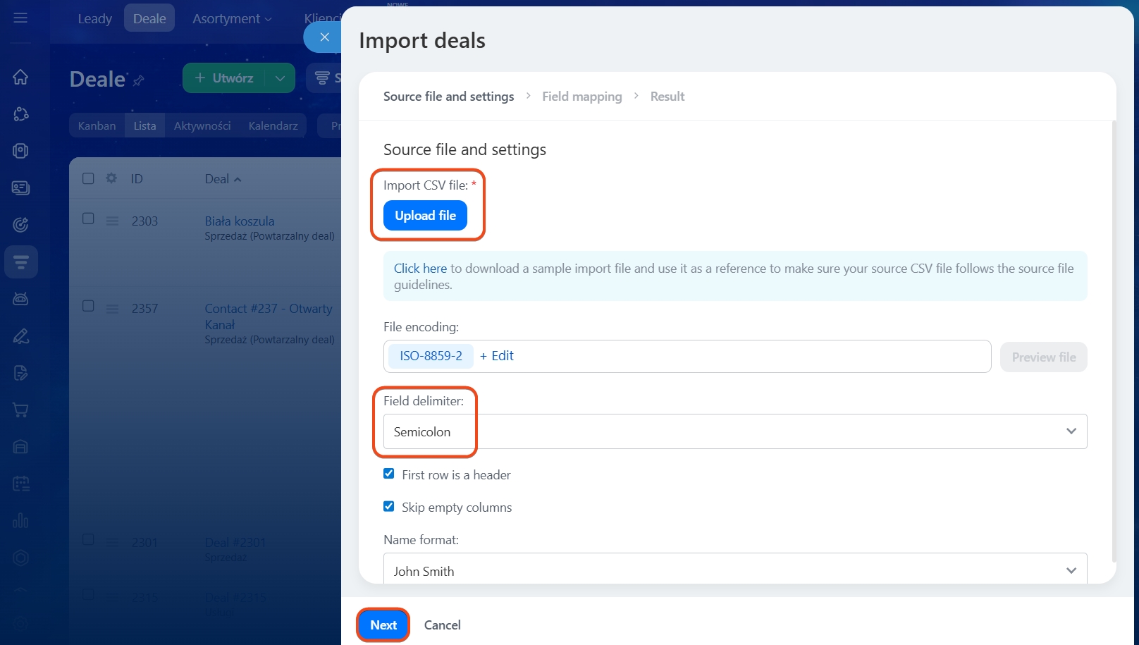 Krok 3. Import deali i powiązanie z firmami oraz kontaktami